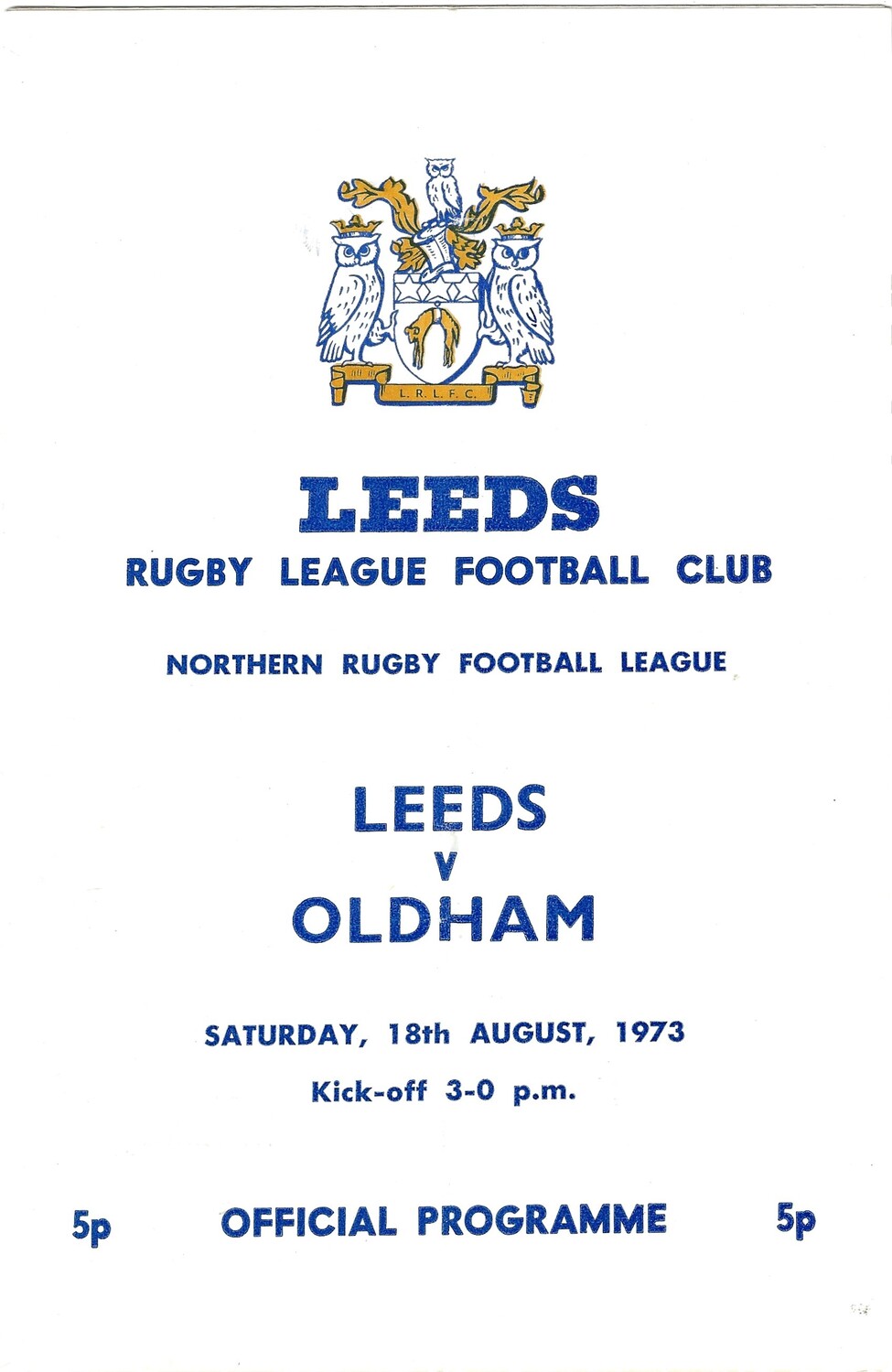 1973/74 Leeds v Oldham (18/08/1973) Rugby League Programme