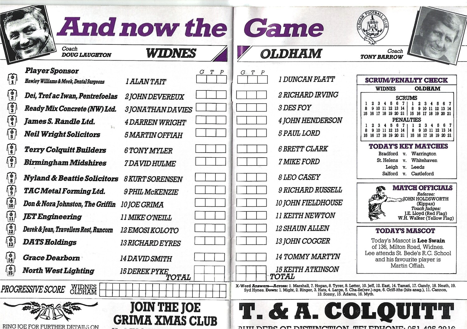 1989/90 Widnes v Oldham Silk Cut Challenge Cup 3rd Round Rugby League Programme