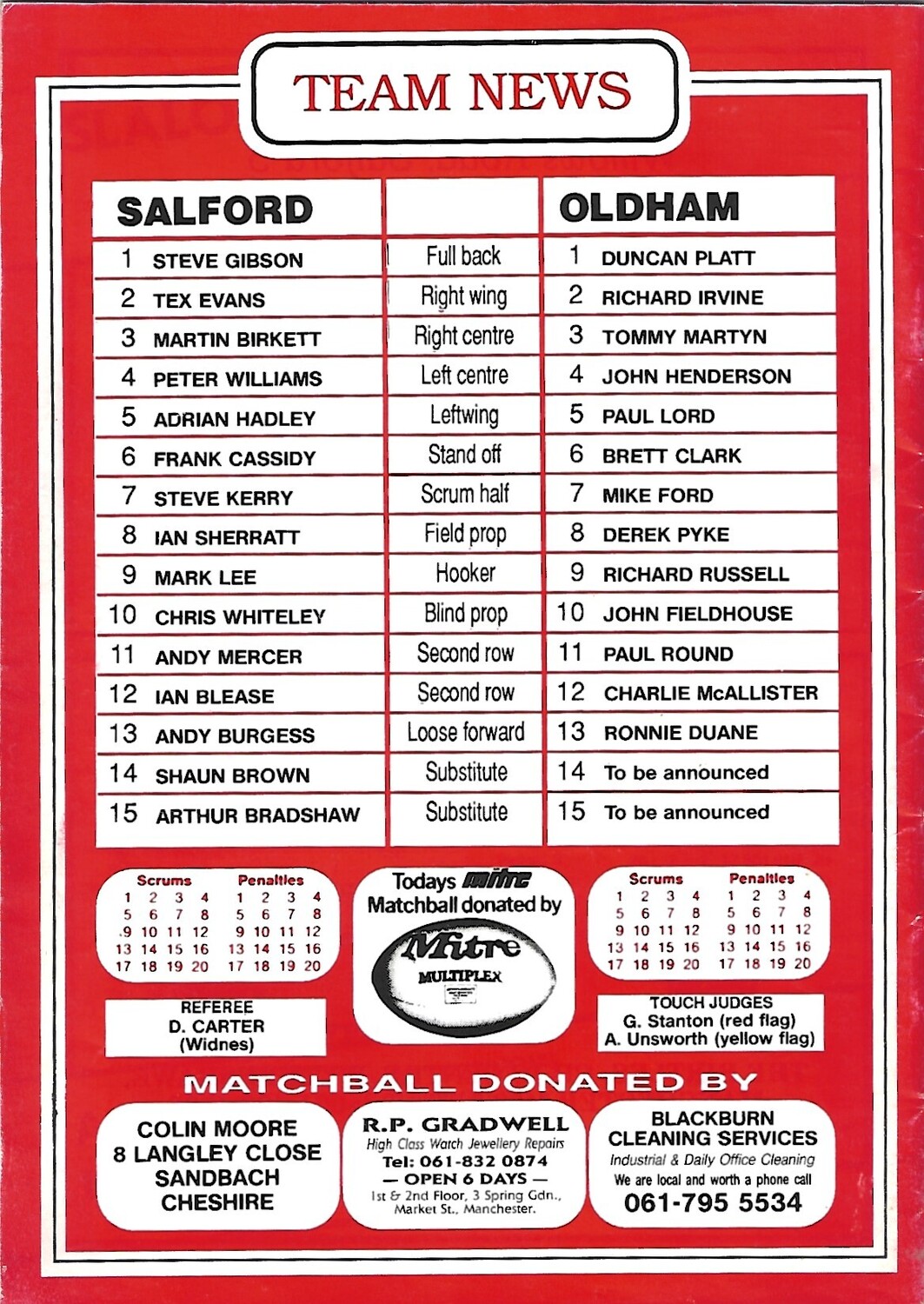 1990/91 Salford v Oldham Greenalls Lancashire Cup 1st Round Rugby League Programme