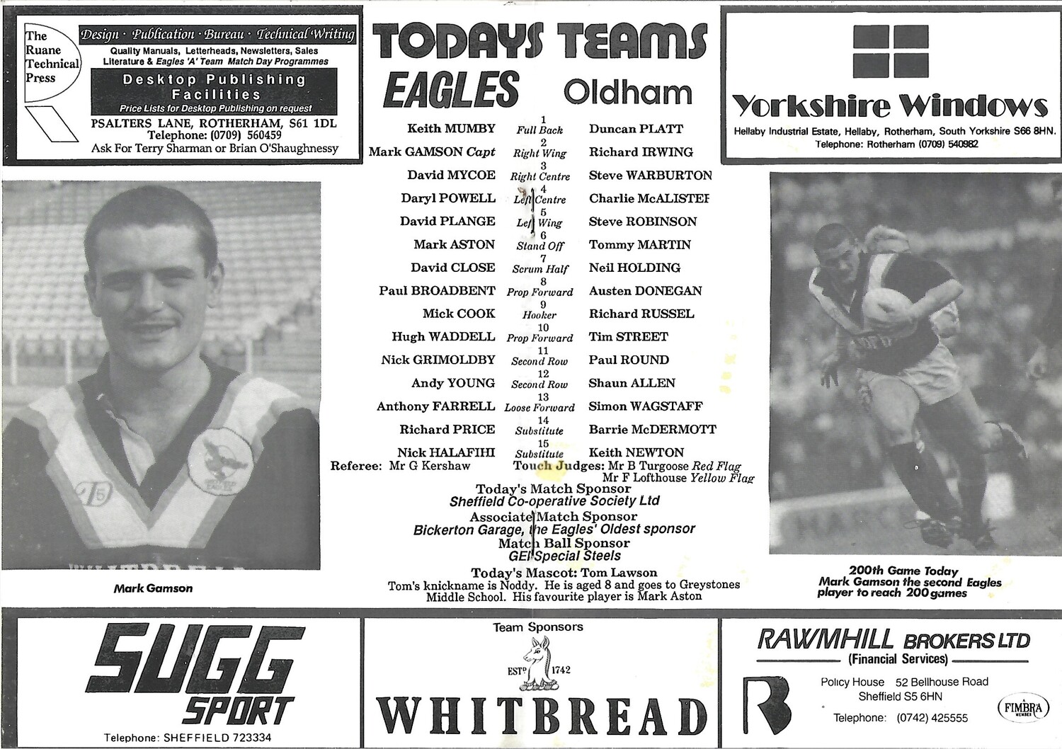 1991/92 Sheffield Eagles v Oldham Rugby League Programme