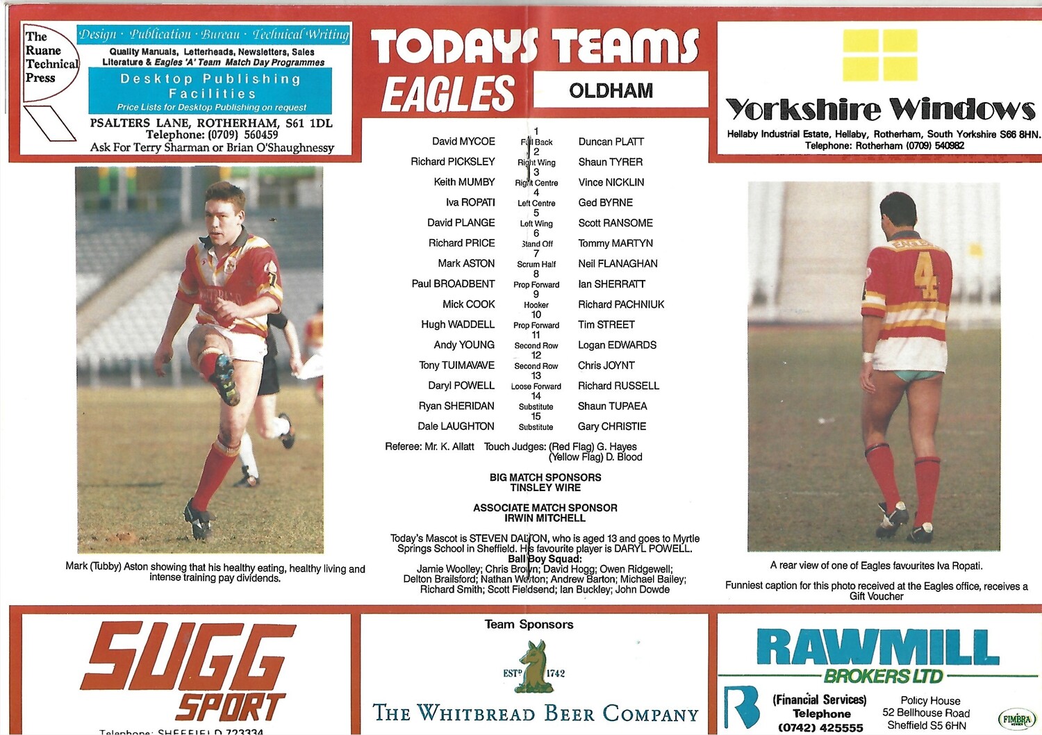 1991/92 Sheffield Eagles v Oldham Rugby League Programme