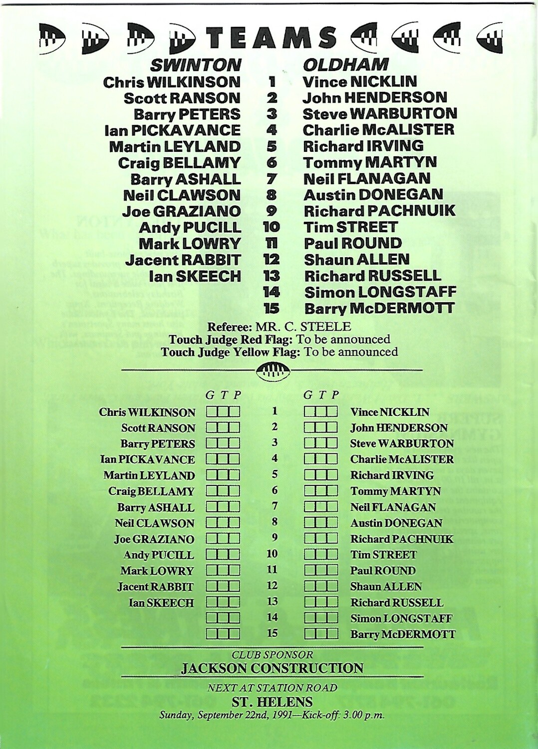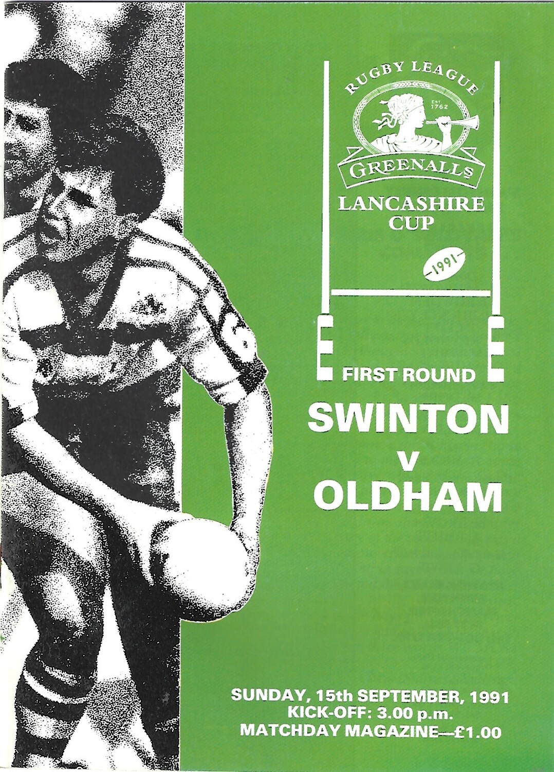 1991/92 Swinton v Oldham Greenalls Lancashire Cup 1st Round Rugby League Programme