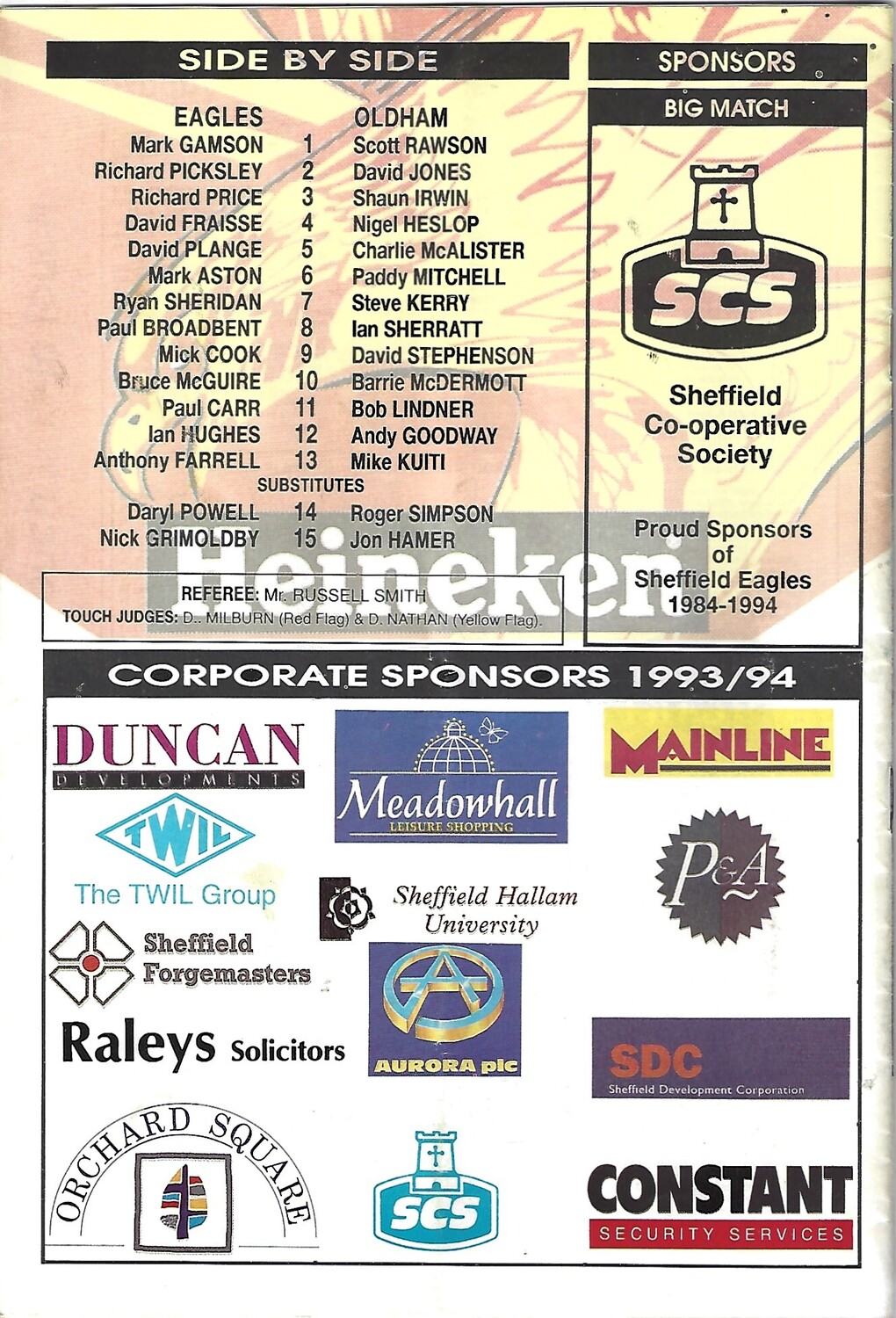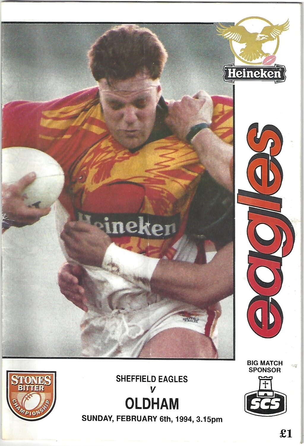 1993/94 Sheffield Eagles v Oldham Rugby League Programme
