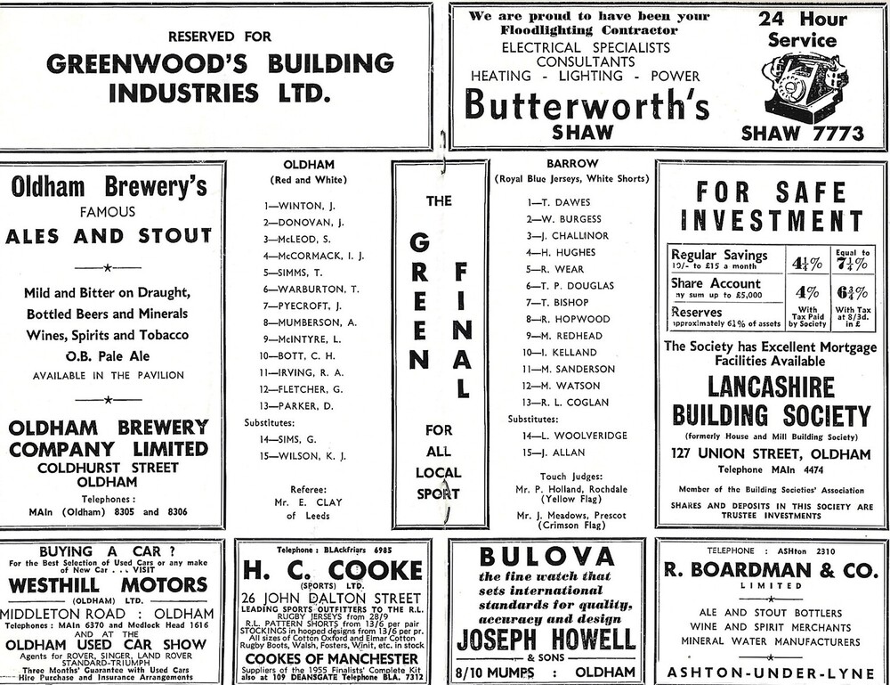 1965/66 Oldham v Barrow Lancashire Cup 1st Round Rugby League Programme