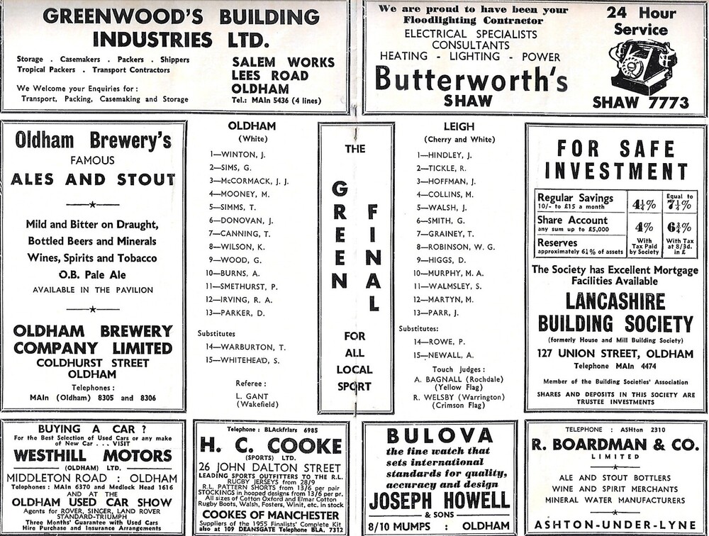 1965/66 Oldham v Leigh Rugby League Programme