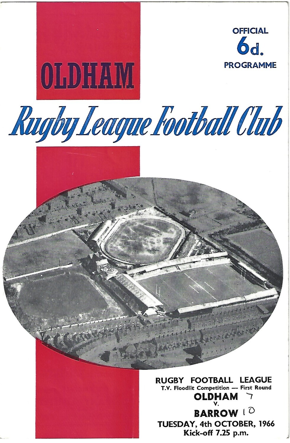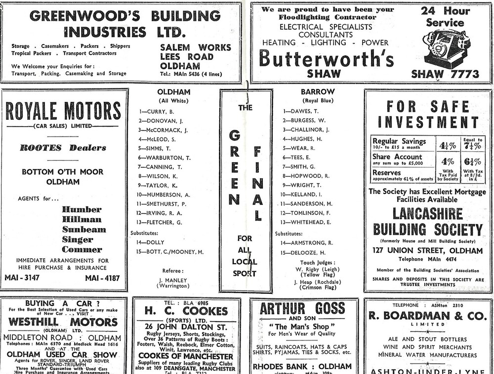 1966/67 Oldham v Barrow BBC T.V Floodlit Competition 1st Round Rugby League Programme