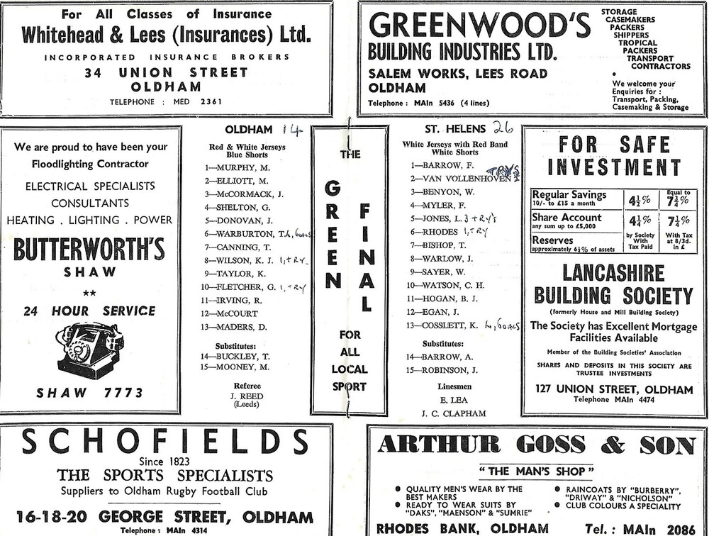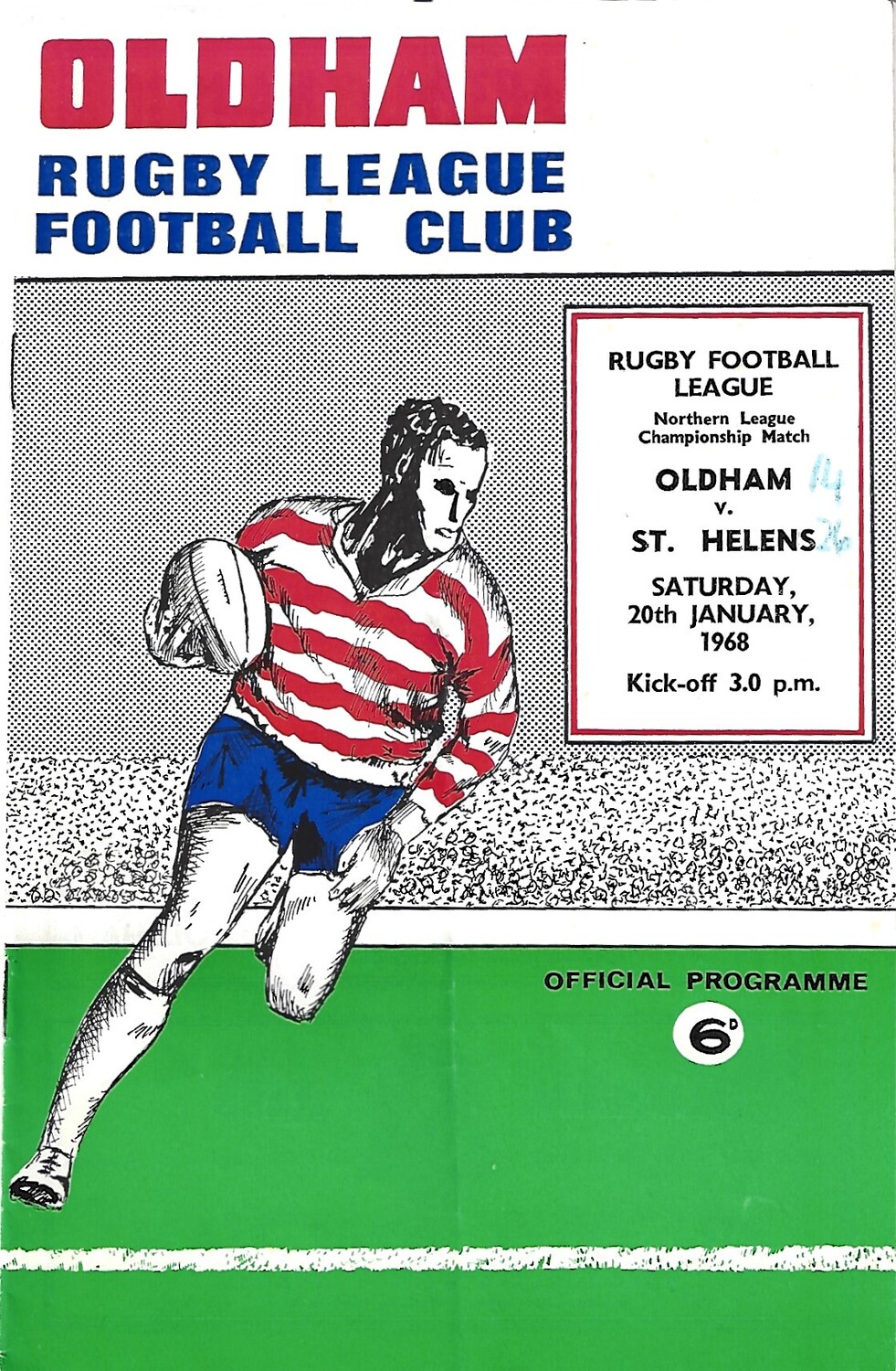 1967/68 Oldham v St, Helens Rugby League Programme