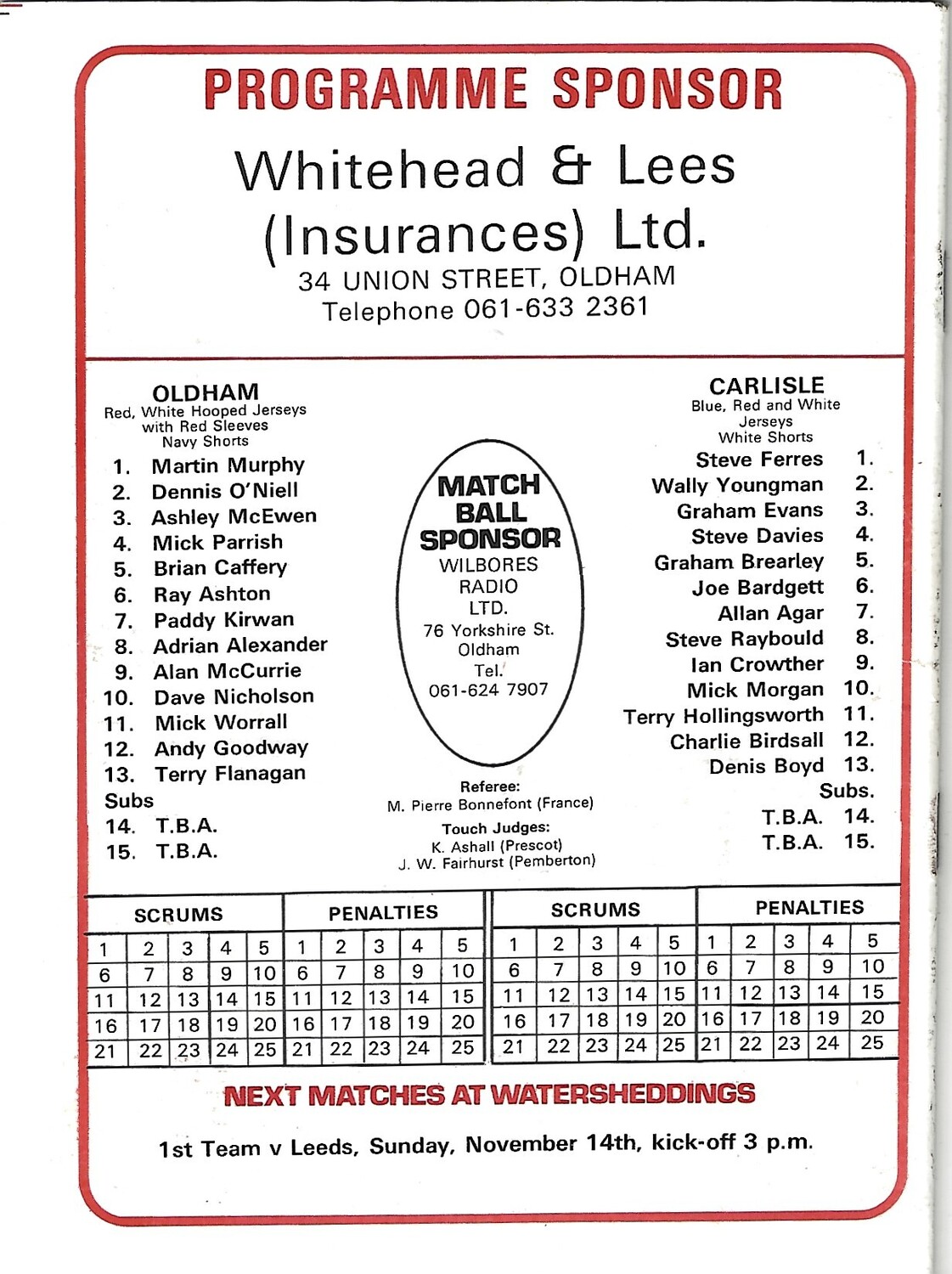 1981/82 Oldham v Carlisle Rugby League Programme