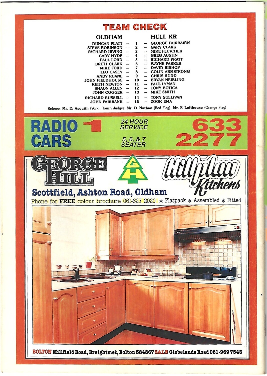 1989/90 Oldham v Hull Kingston Rovers Rugby League Programme