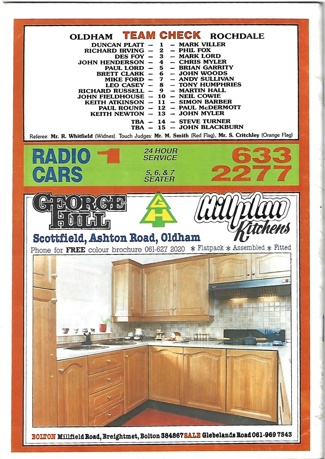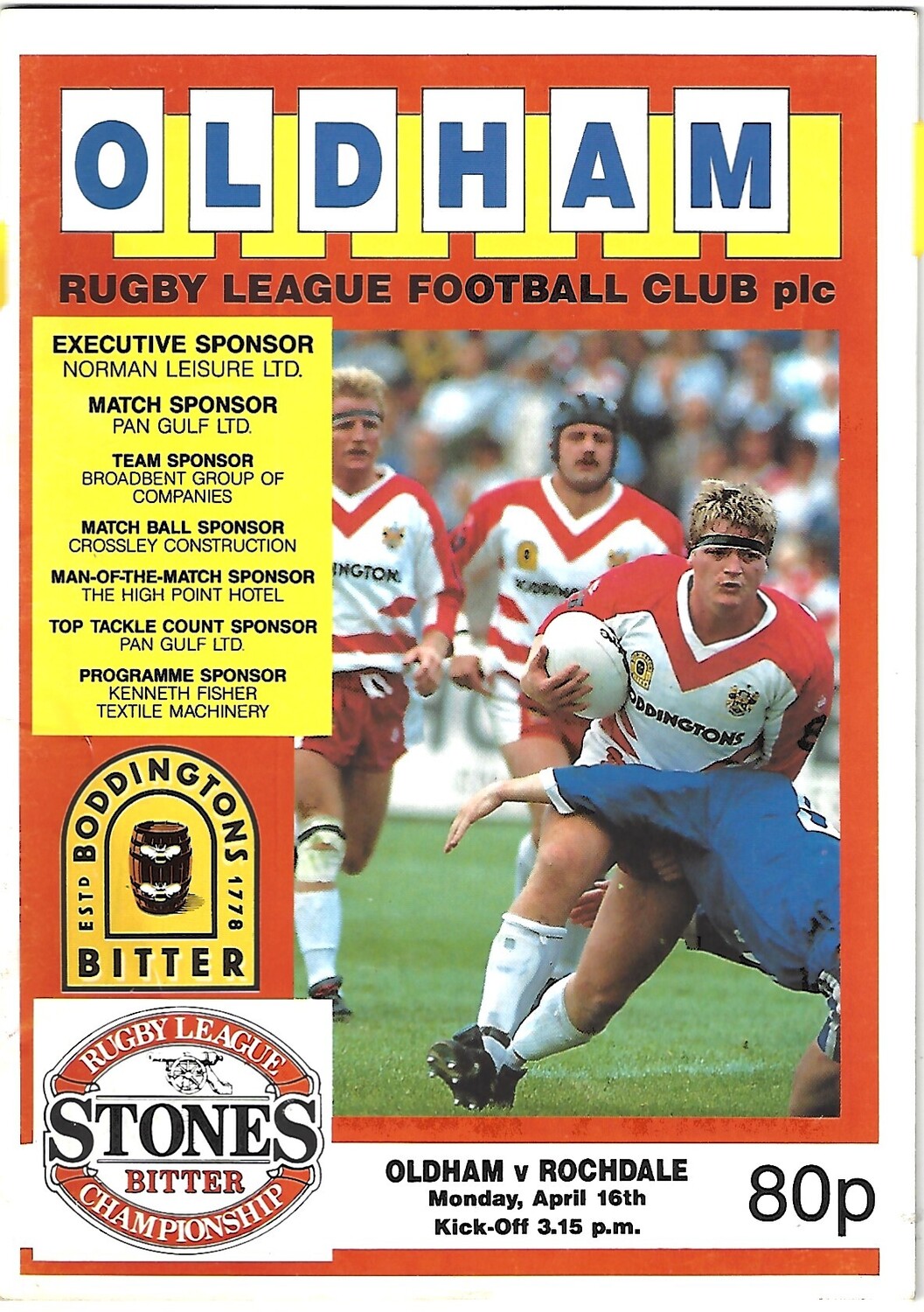 1989/90 Oldham v Rochdale Hornets Rugby League Programme