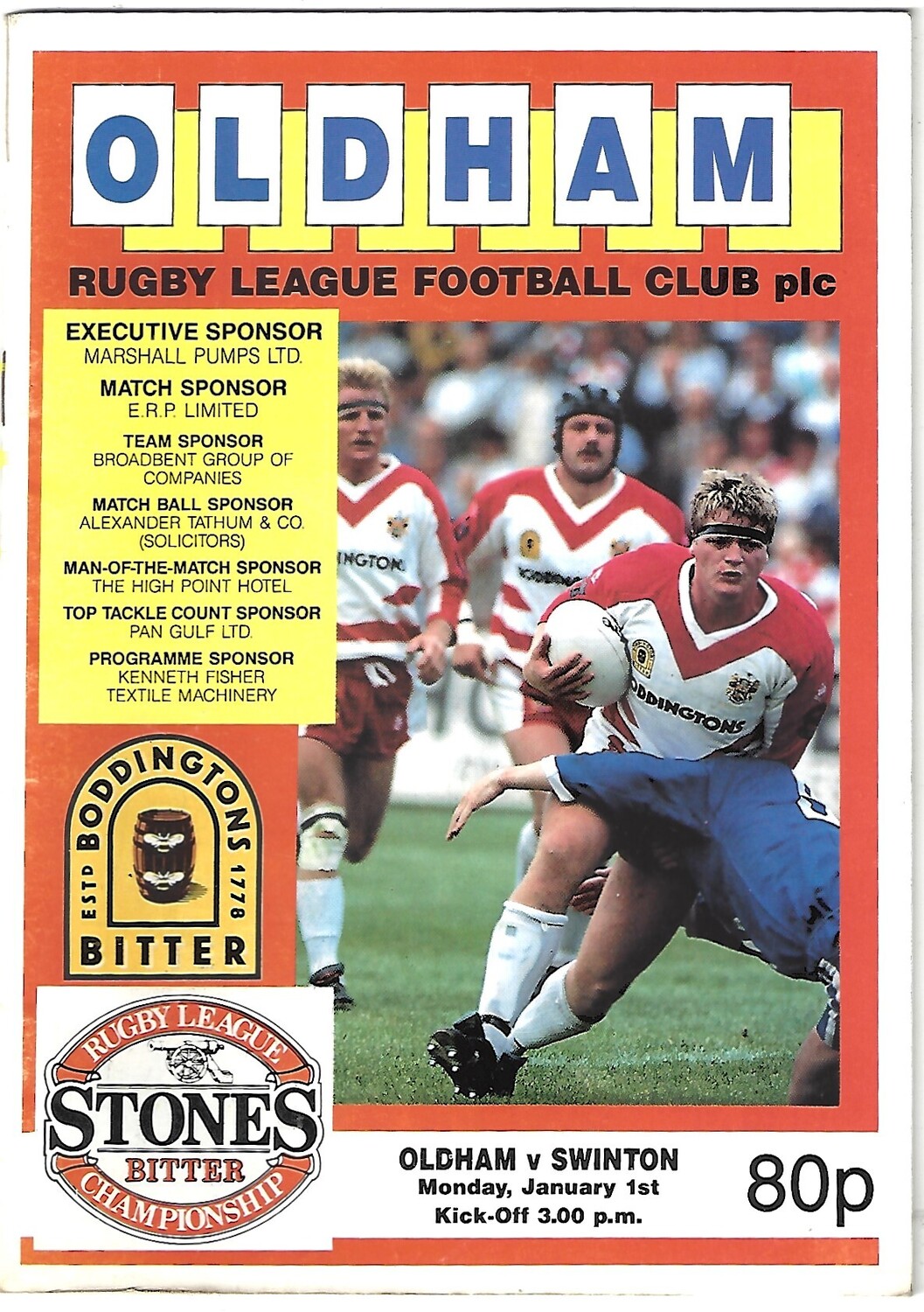 1989/90 Oldham v Swinton Rugby League Programme