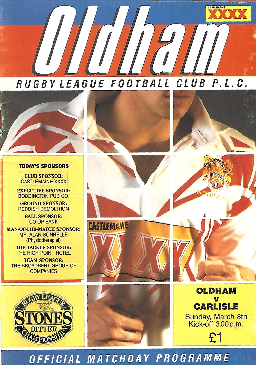 1991/92 Oldham v Carlisle (08/03/1992) Rugby League Programme