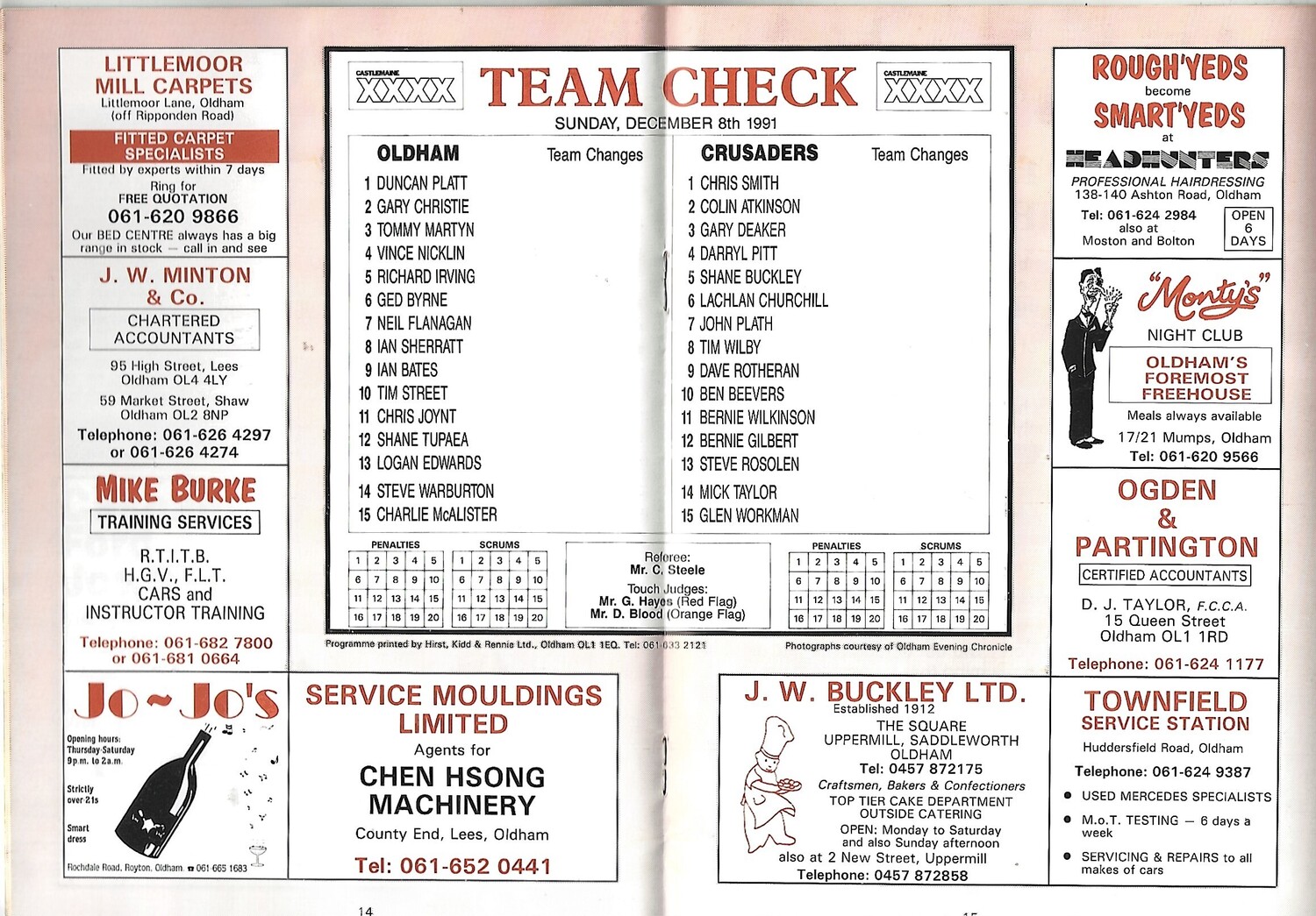 1991/92 Oldham v London Crusaders (08/12/1991) Rugby League Programme