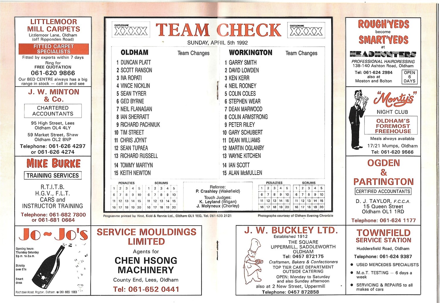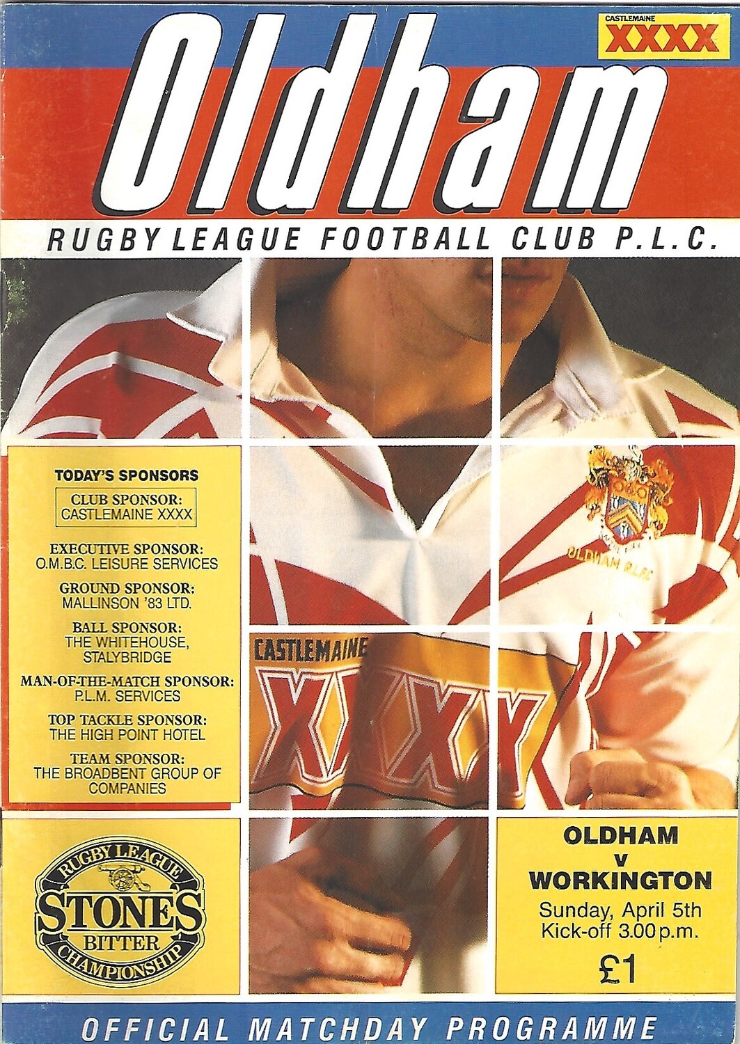 1991/92 Oldham v Workington Town (05/04/1992) Rugby League Programme