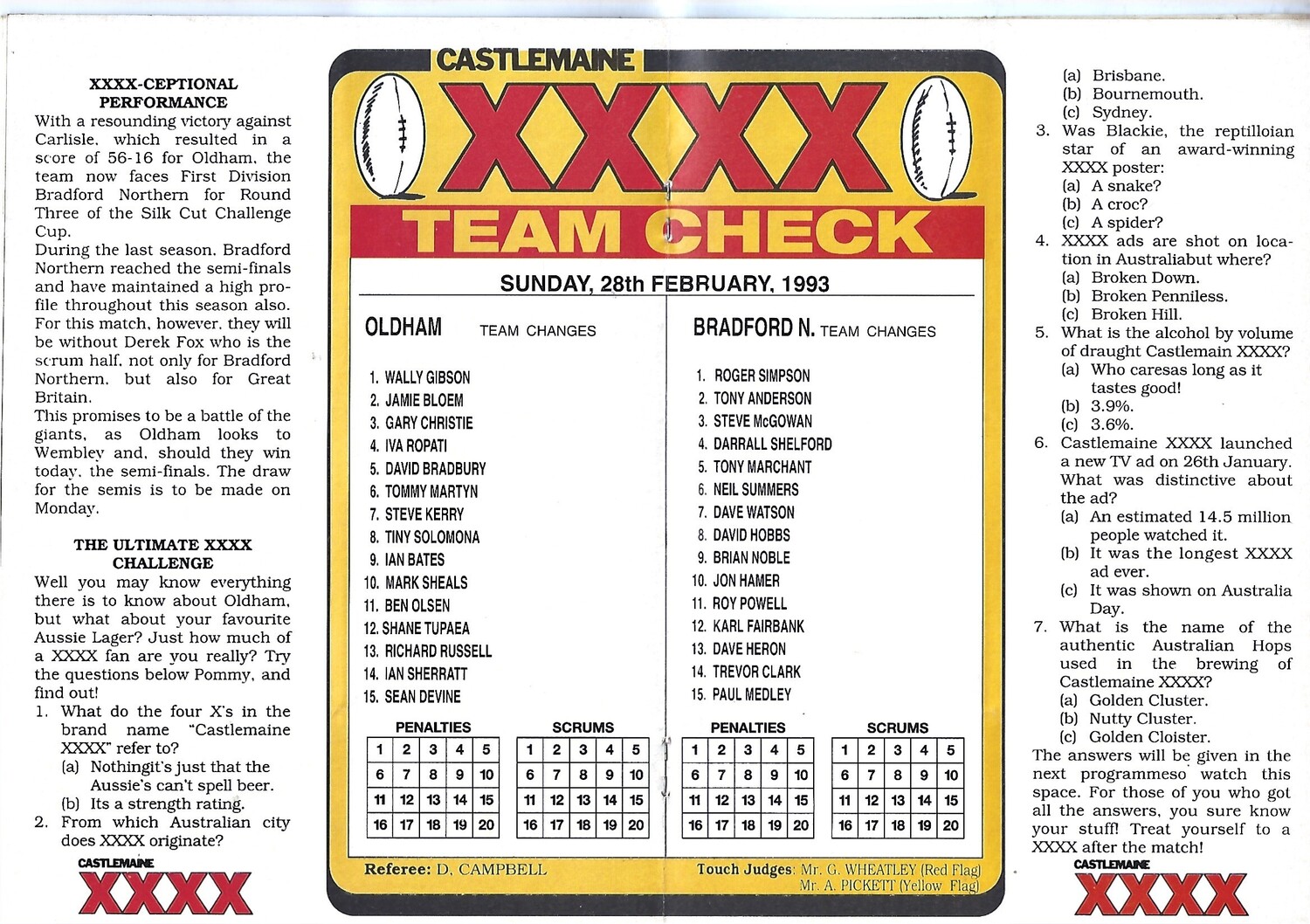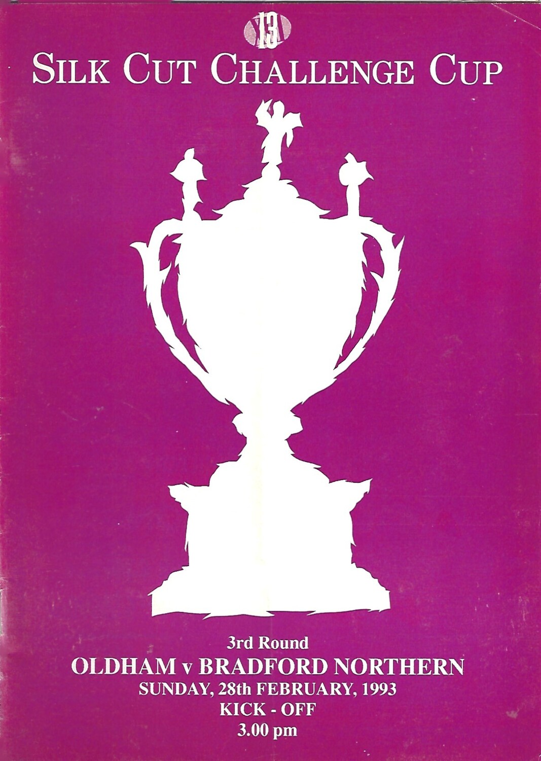 1992/93 Oldham v Bradford Northern Silk Cut Challenge Cup 3rd Round Rugby League Programme