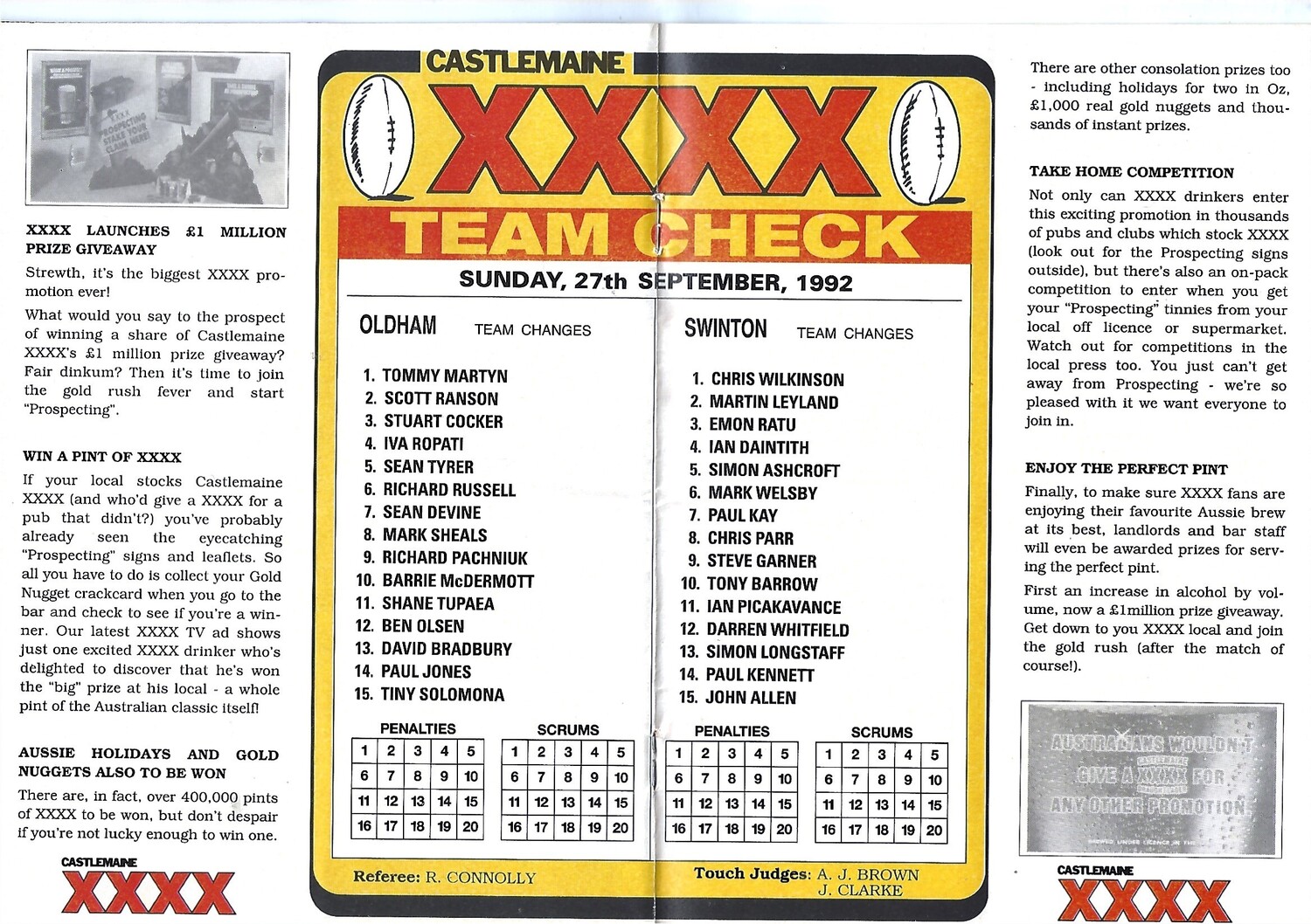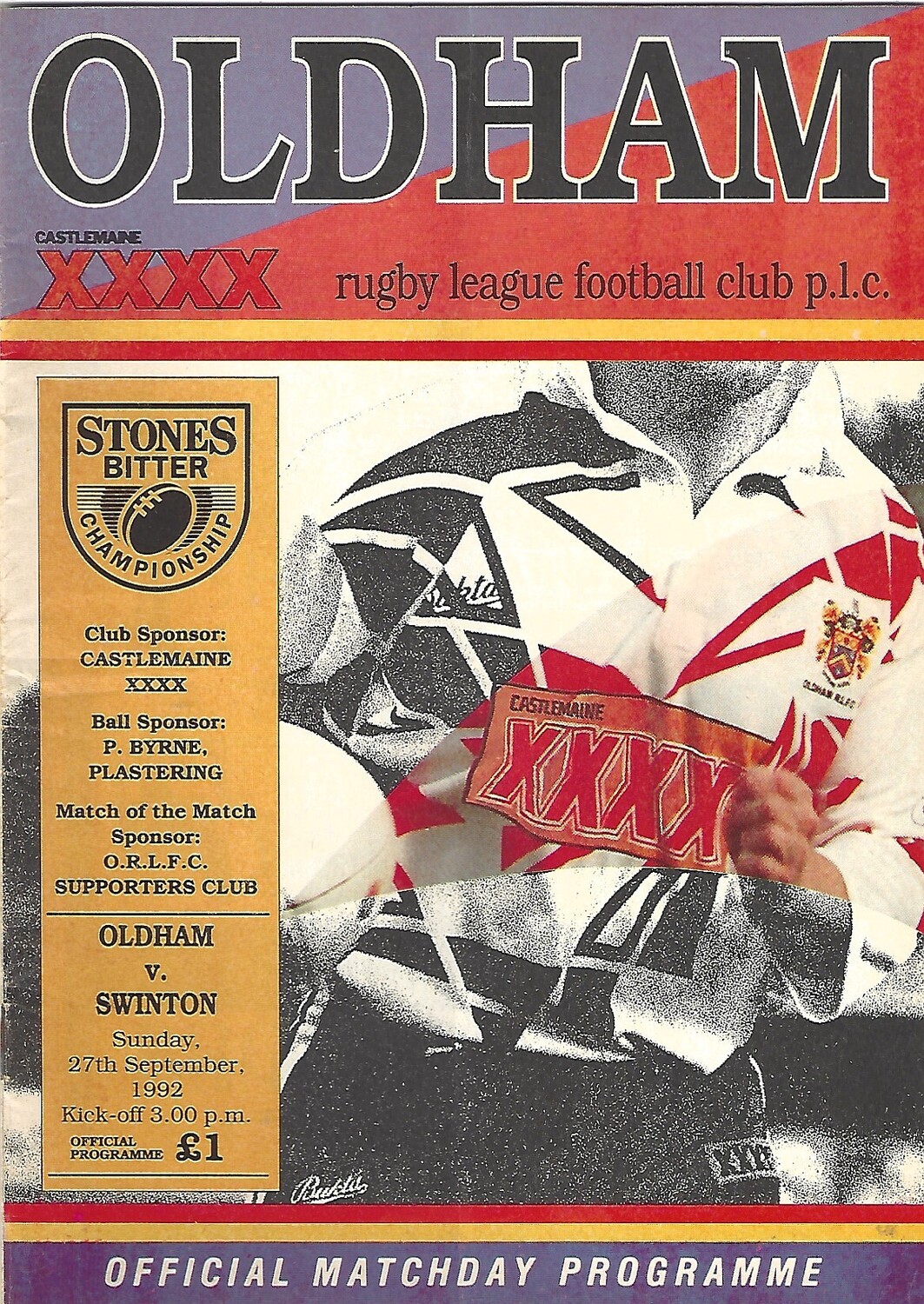 1992/93 Oldham v Swinton Rugby League Programme