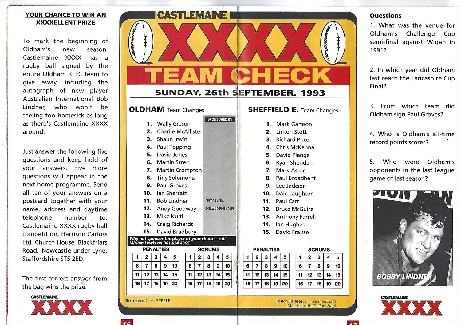 1993/94 Oldham v Sheffield Eagles Rugby League Programme
