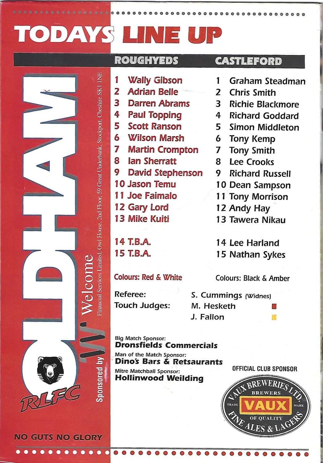 1994/95 Oldham Roughyeds v Castleford Rugby League Programme