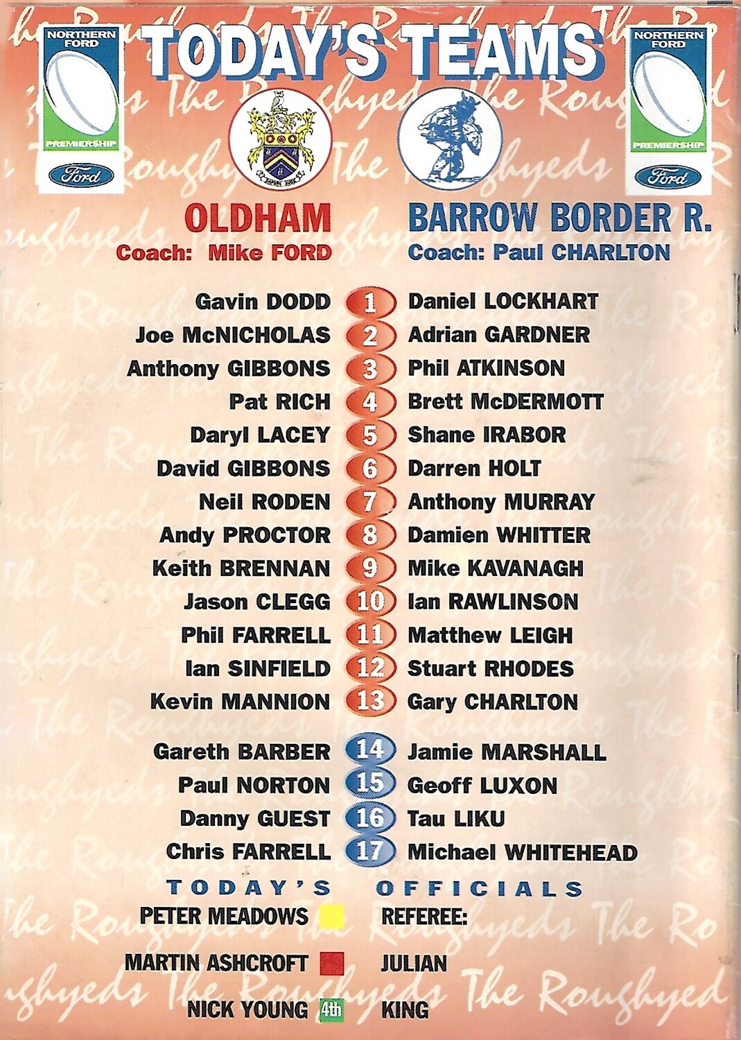 2001 Oldham v Barrow Border Raiders Rugby League Programme
