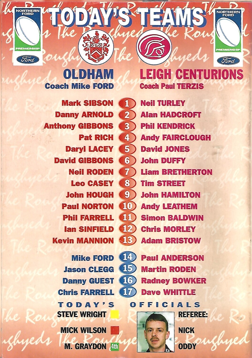 2001 Oldham v Leigh Centurions Rugby League Programme