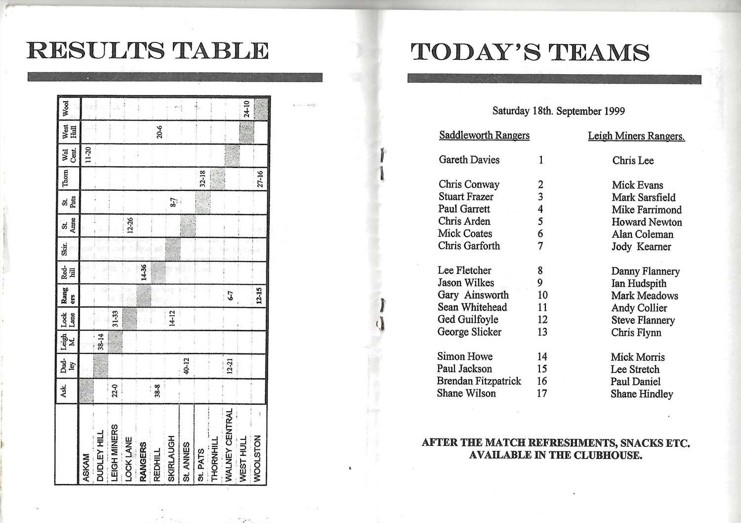 1999/00 Saddleworth Rangers v Leigh Miners Rangers Rugby League Programme