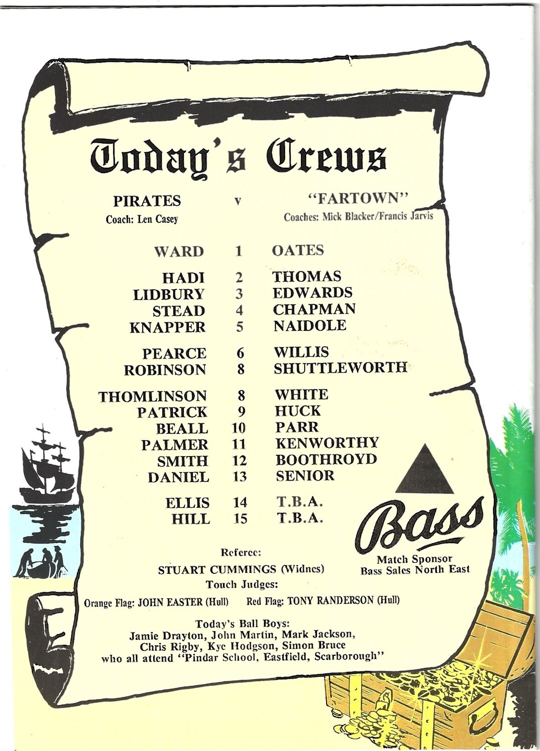 1991/92 Scarborough Pirates v Huddersfield Rugby League Programme