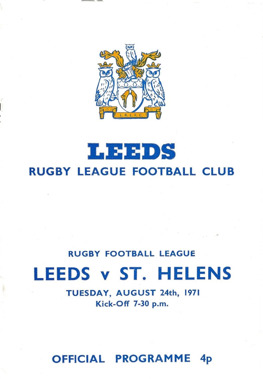 1971/72 Leeds v St. Helens (24/08/1971) Rugby League Programme