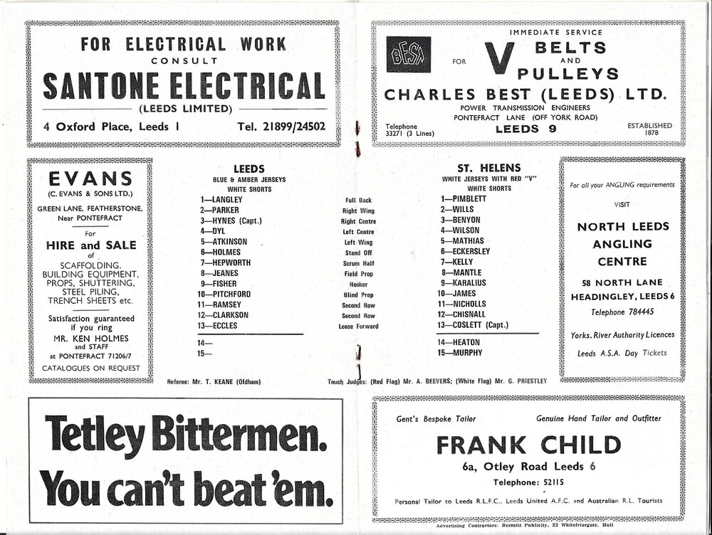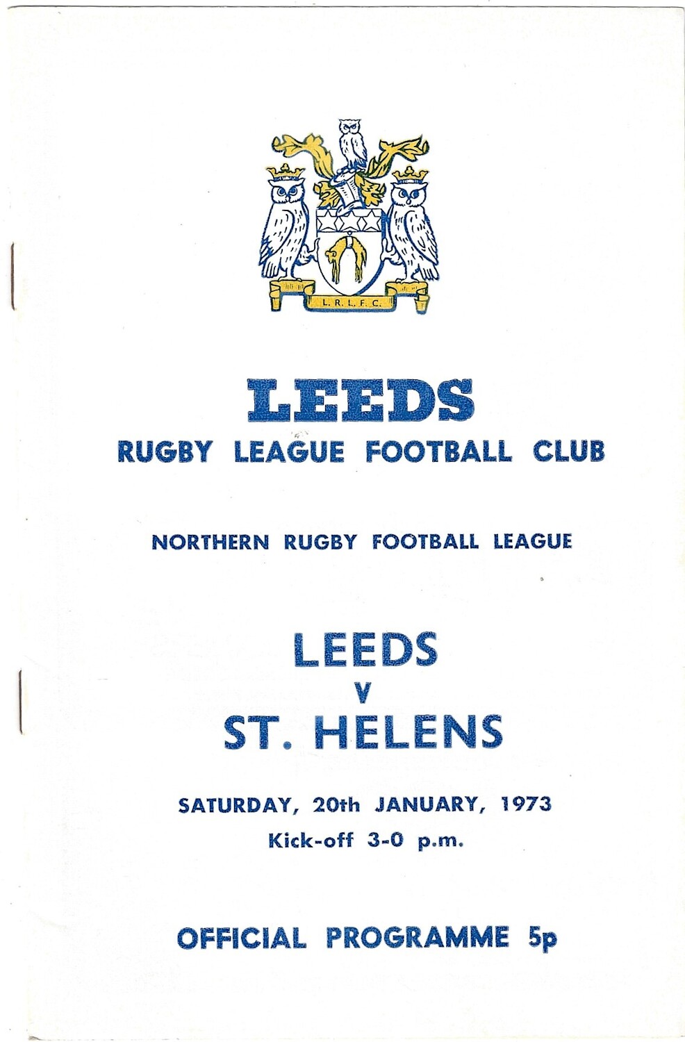 1972/73 Leeds v St. Helens (20/01/1973) Rugby League Programme
