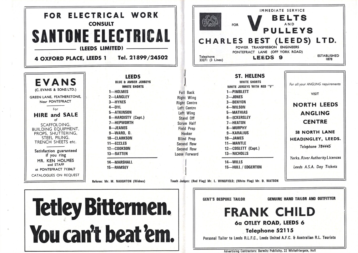 1973/74 Leeds v St. Helens (13/10/1973) Rugby League Programme