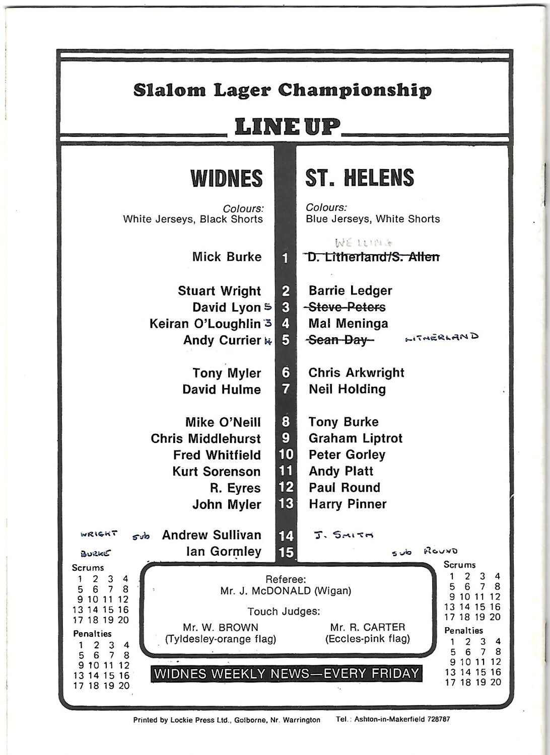 Slight creasing, discoloration, rusty staples, score/team changes in ink on team line up page (as per photo).