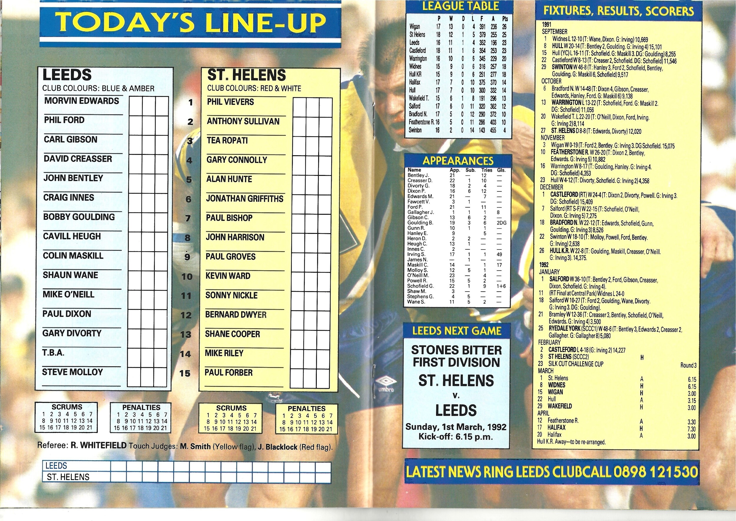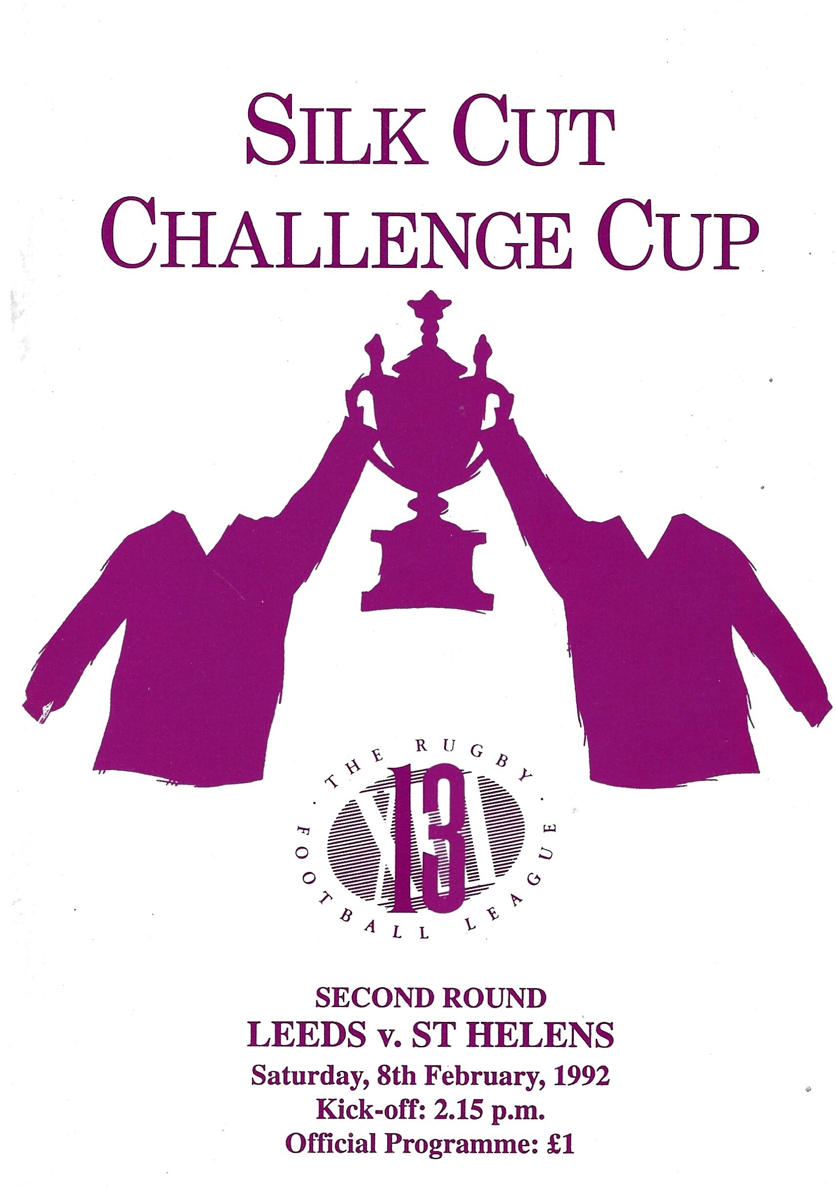1991/92 Leeds v St. Helens (08/02/1992) Silk Cut Challenge Cup Second Round Rugby League Programme