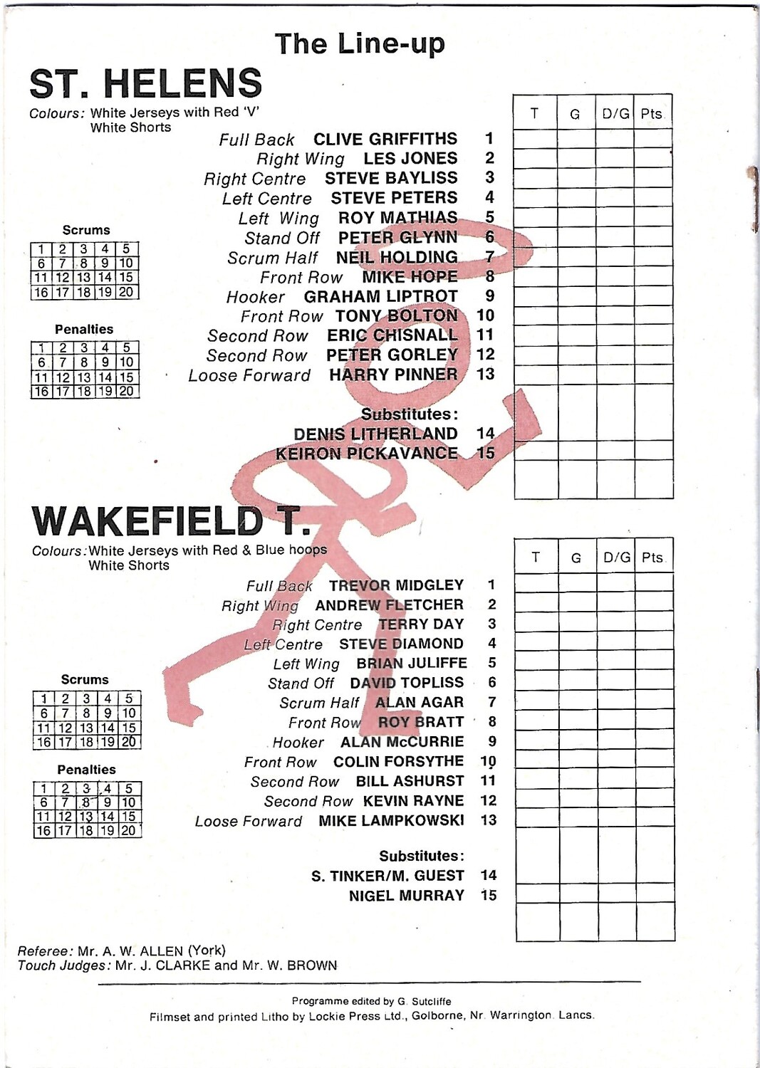 1980/81 St. Helens v Wakefield Trinity Rugby League Programme