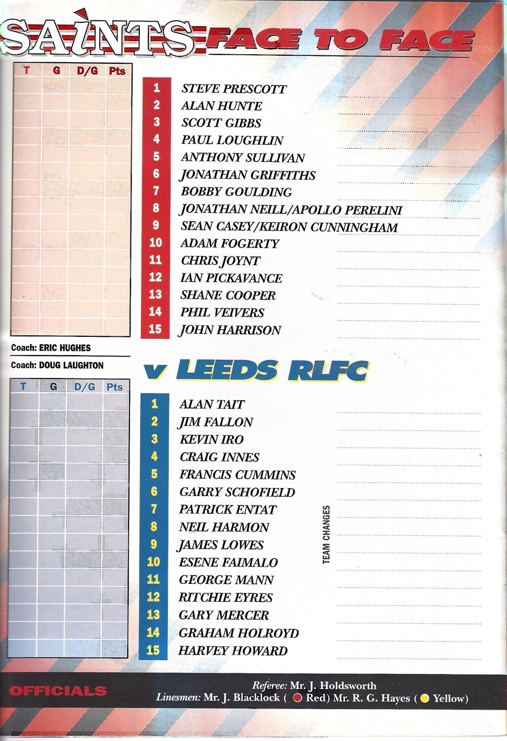 1994/95 St. Helens v Leeds Rugby League programme