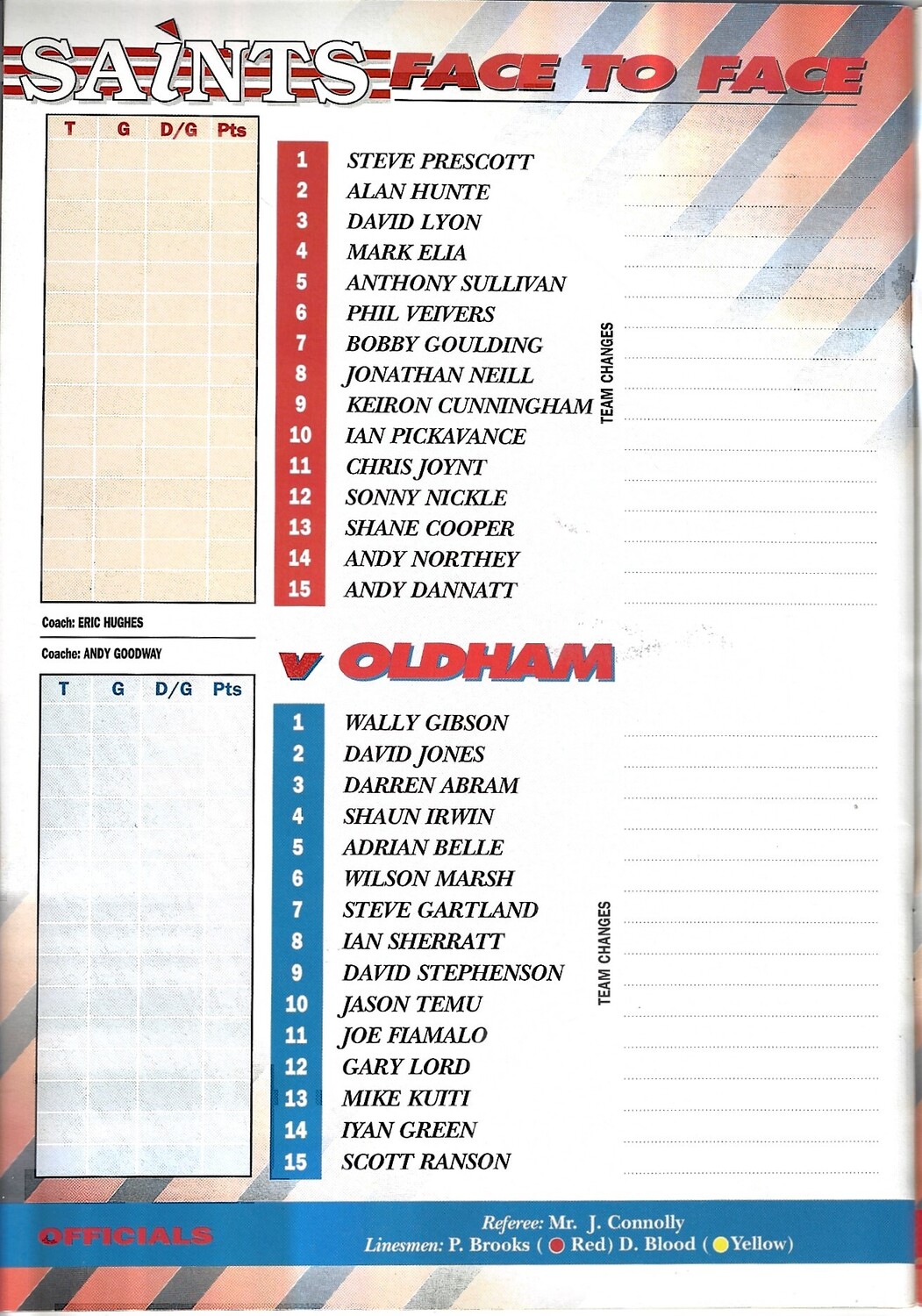 1994/95 St. Helens v Oldham Rugby League programme