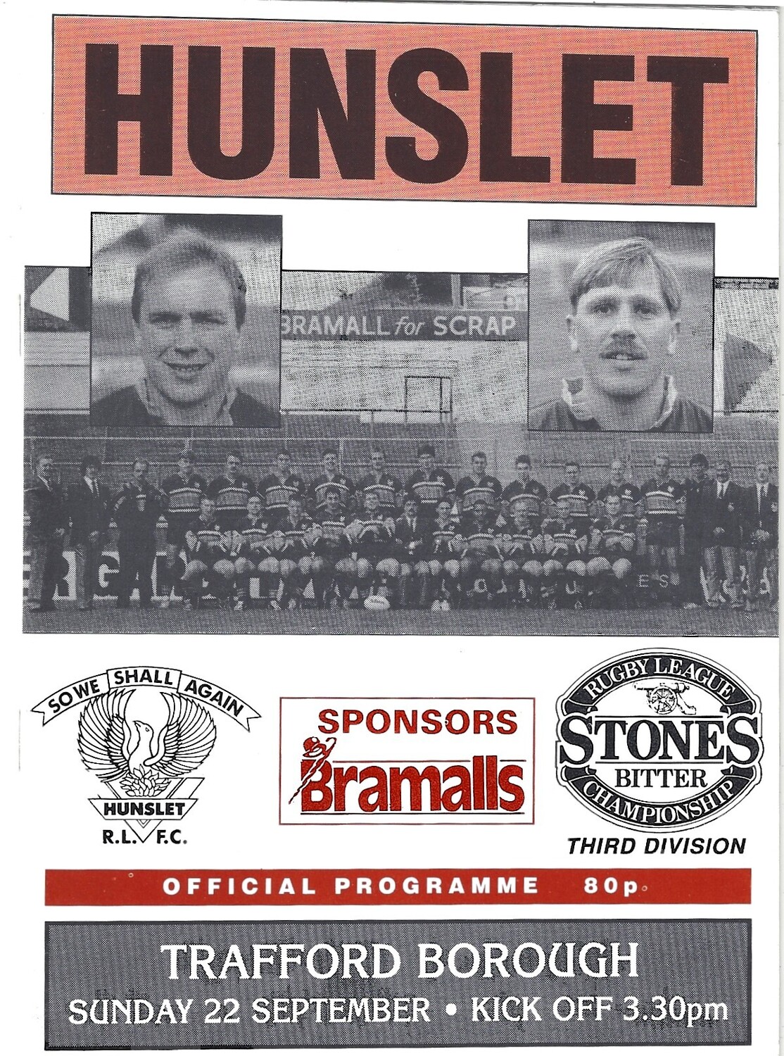1991/92 Hunslet v Trafford Borough Rugby League programme