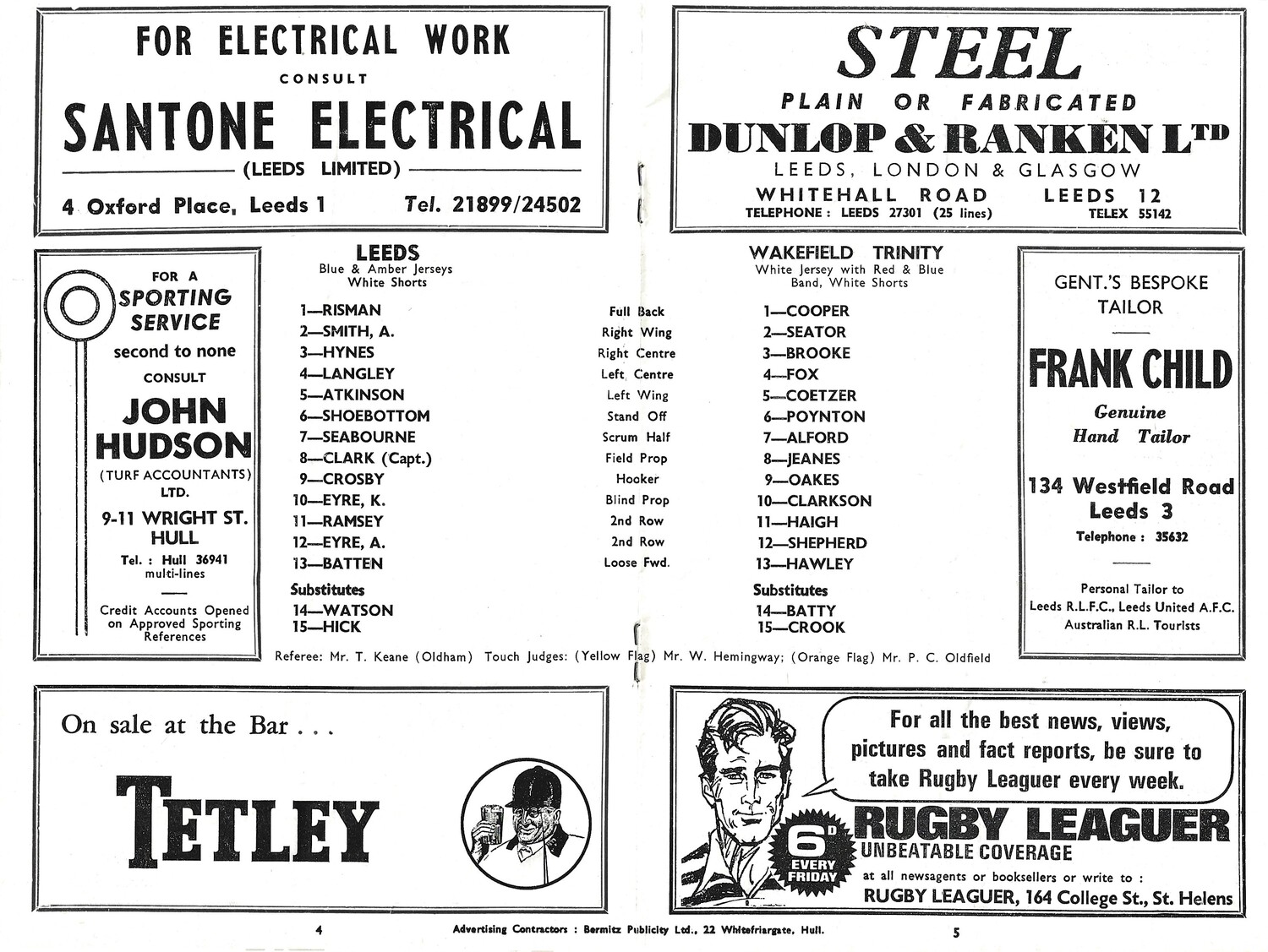 1967/68 Leeds v Wakefield Trinity (26/12/1967) Rugby League Programme