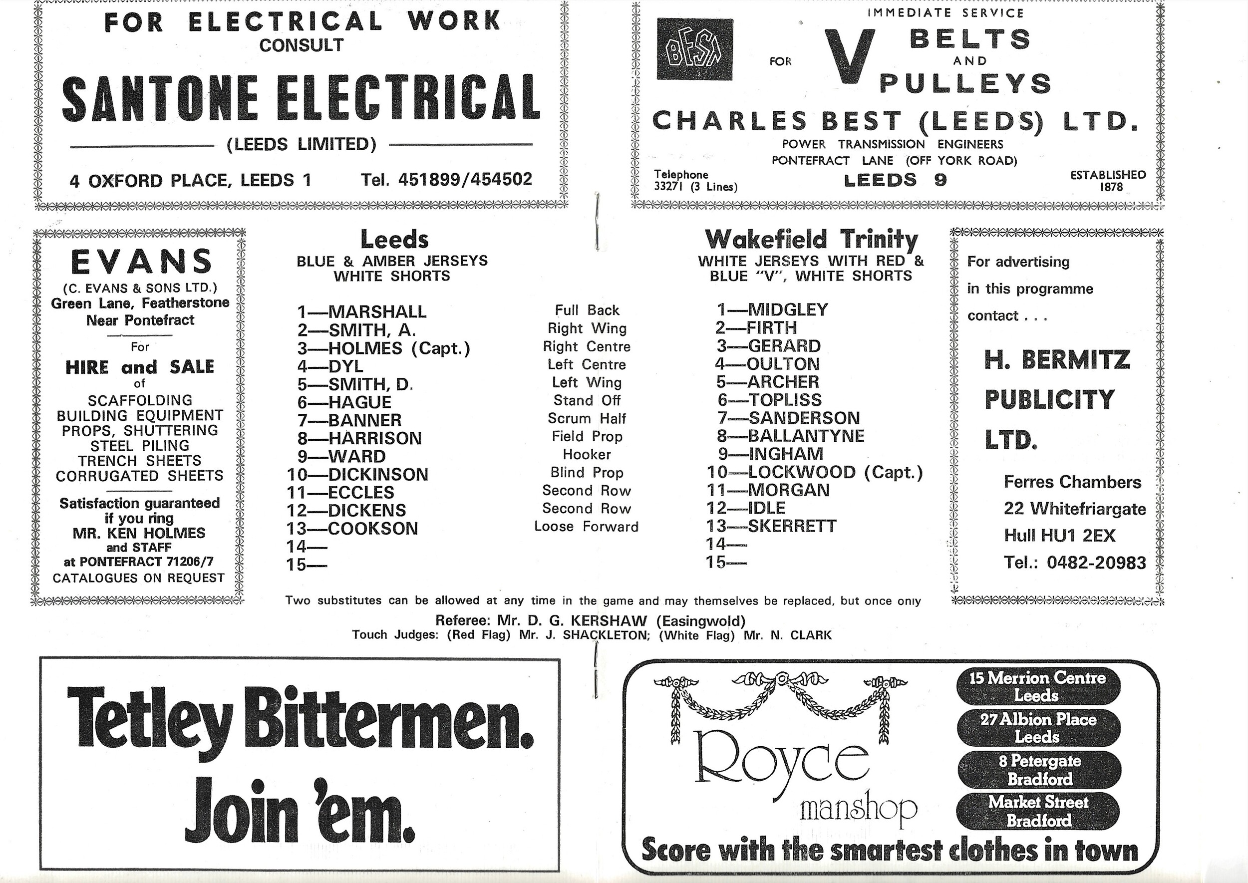 1976/77 Leeds v Wakefield Trinity (27/12/1976) Rugby League Programme