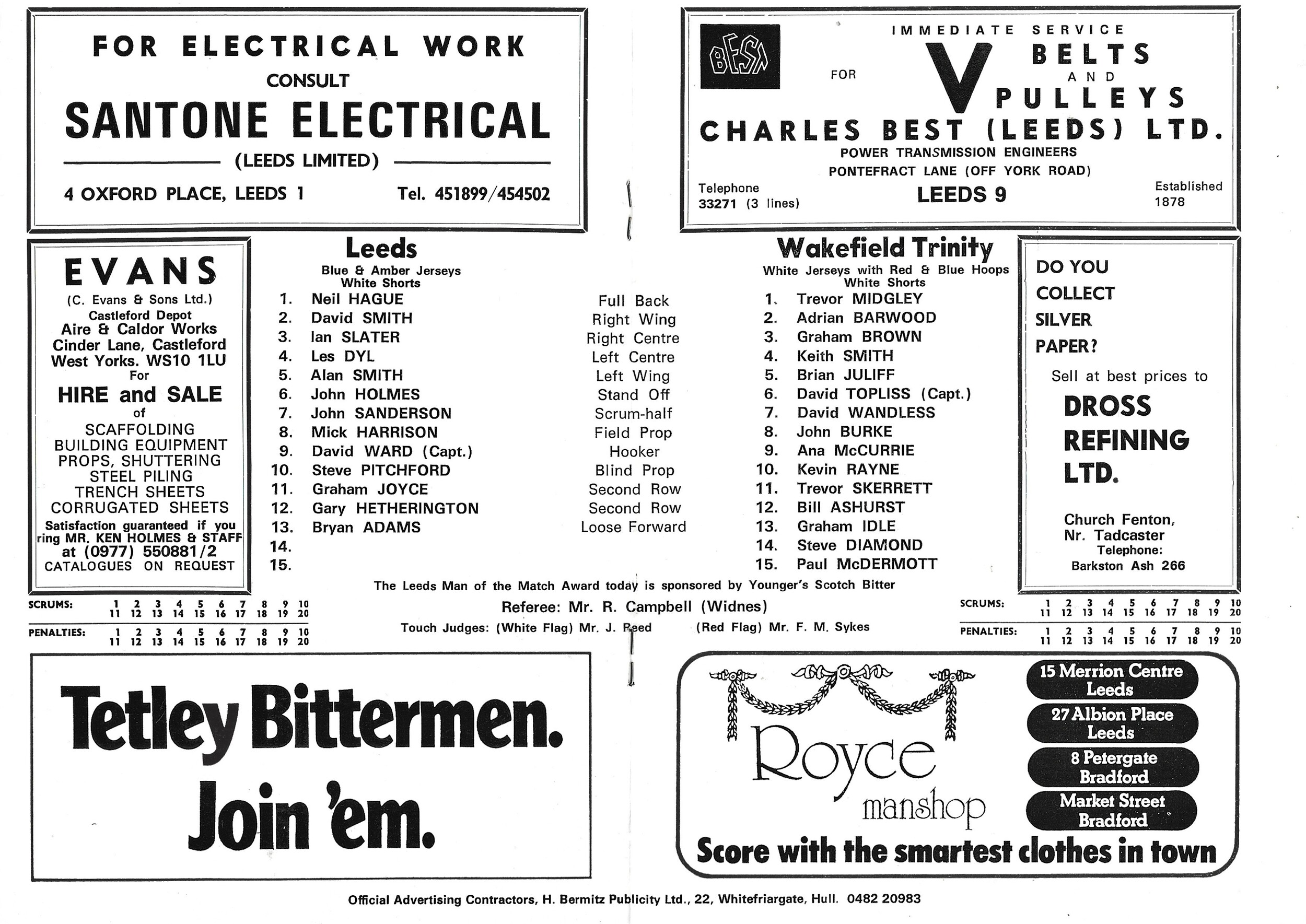 1978/79 Leeds v Wakefield Trinity (26/12/1978) Rugby League Programme