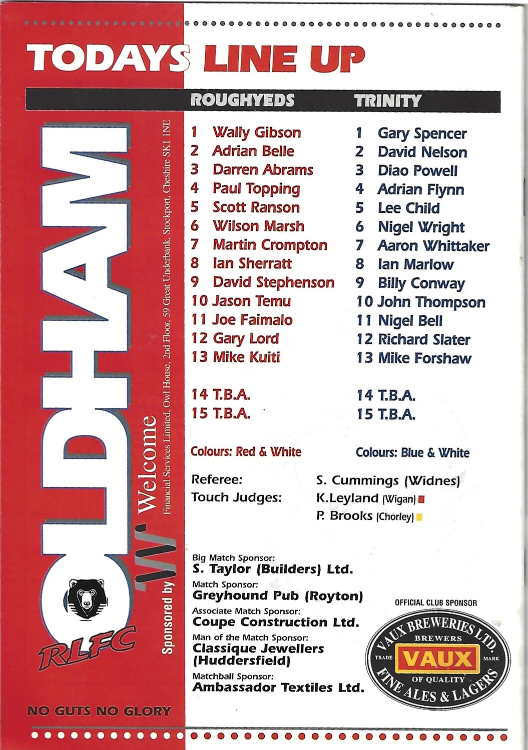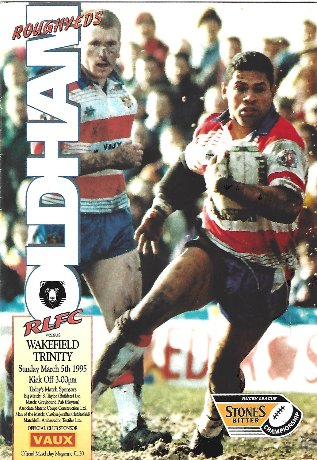 1994/95 Oldham Roughyeds v Wakefield Trinity Rugby League Programme