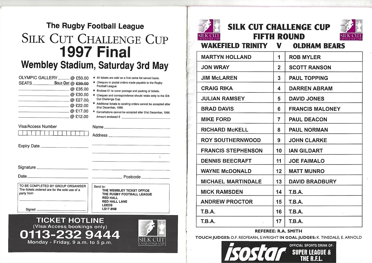 1997 Wakefield Trinity v Oldham Bears Silk Cut Challenge Cup 5th Round Rugby League Programme