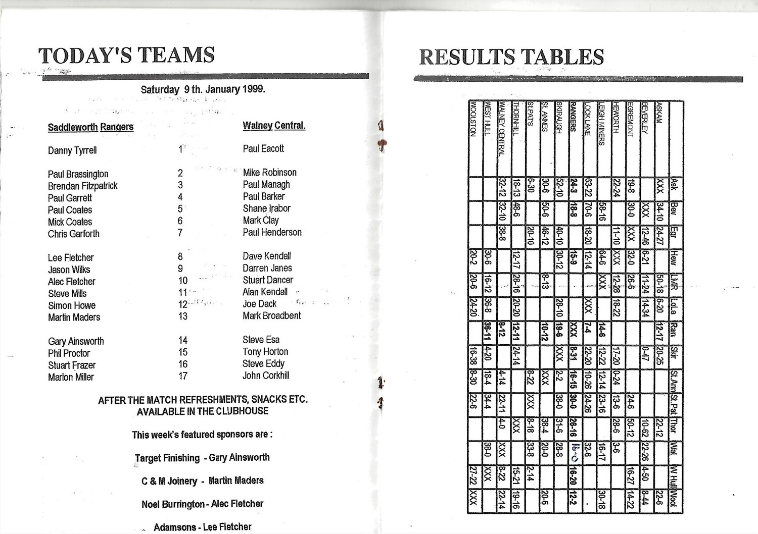 1998/99 Saddleworth Rangers v Walney Central Rugby League Programme