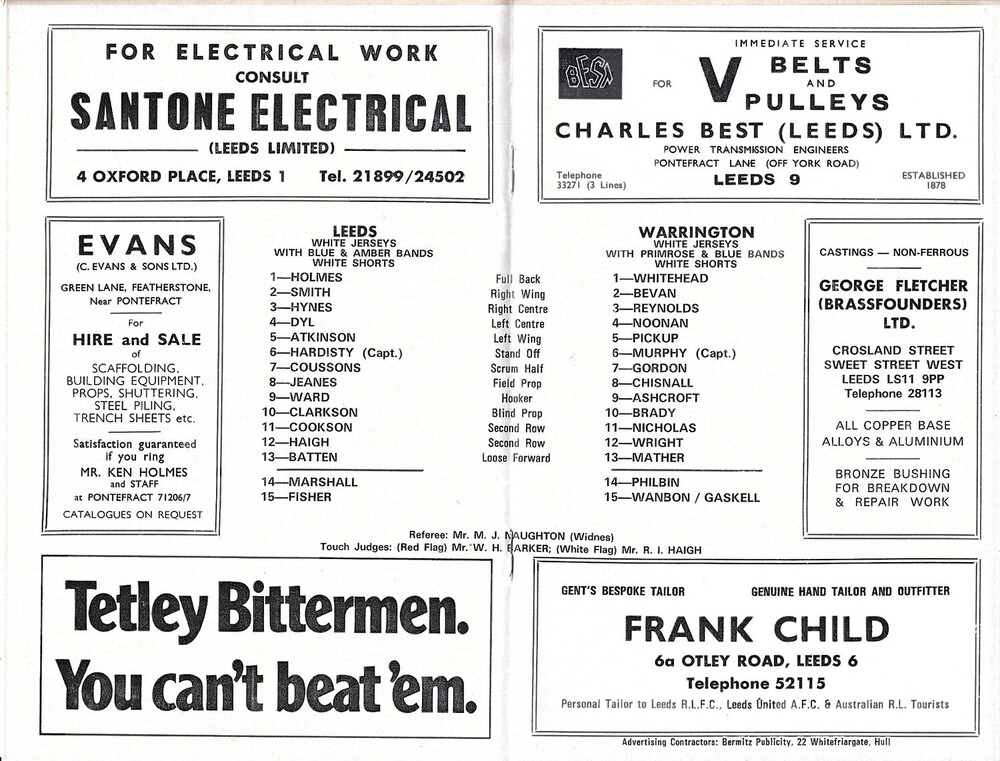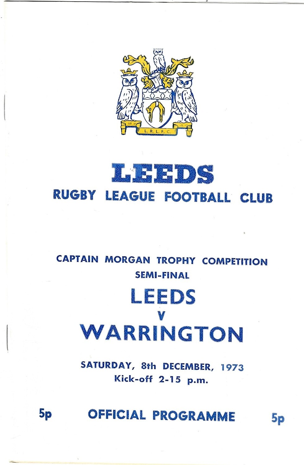 1973/74 Leeds v Warrington Captain Morgan Trophy Competition Semi Final Rugby League programme