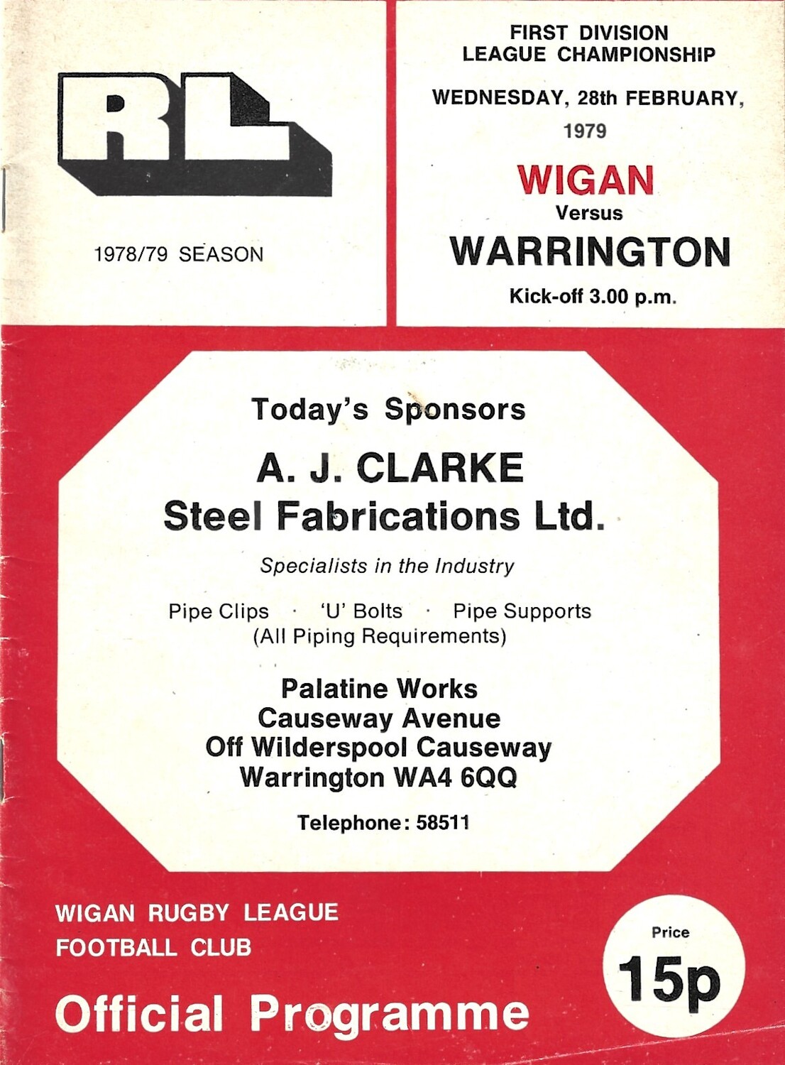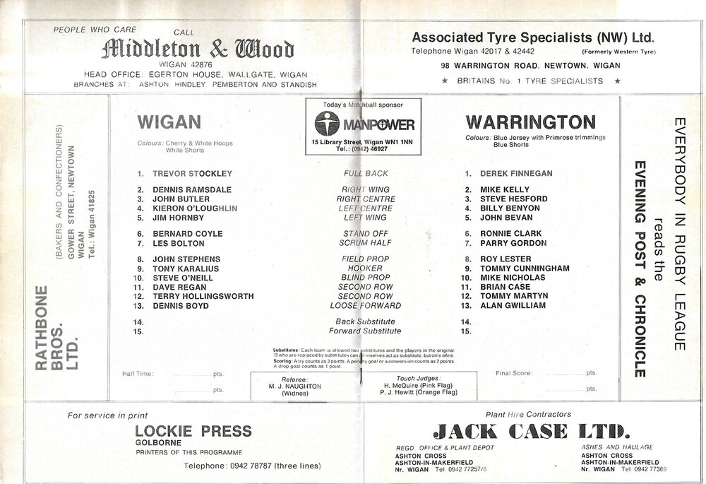 1978/79 Wigan v Warrington Rugby League programme