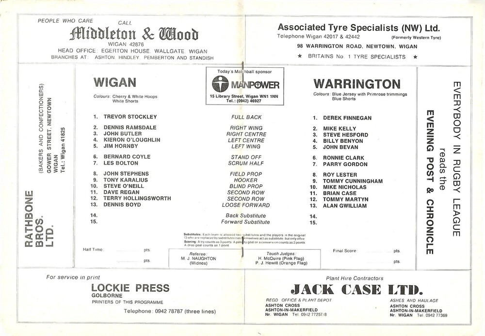 1978/79 Wigan v Warrington Rugby League Programme