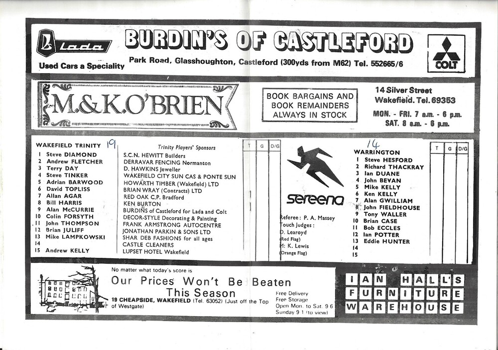 1980/81 Wakefield Trinity v Warrington Rugby League programme