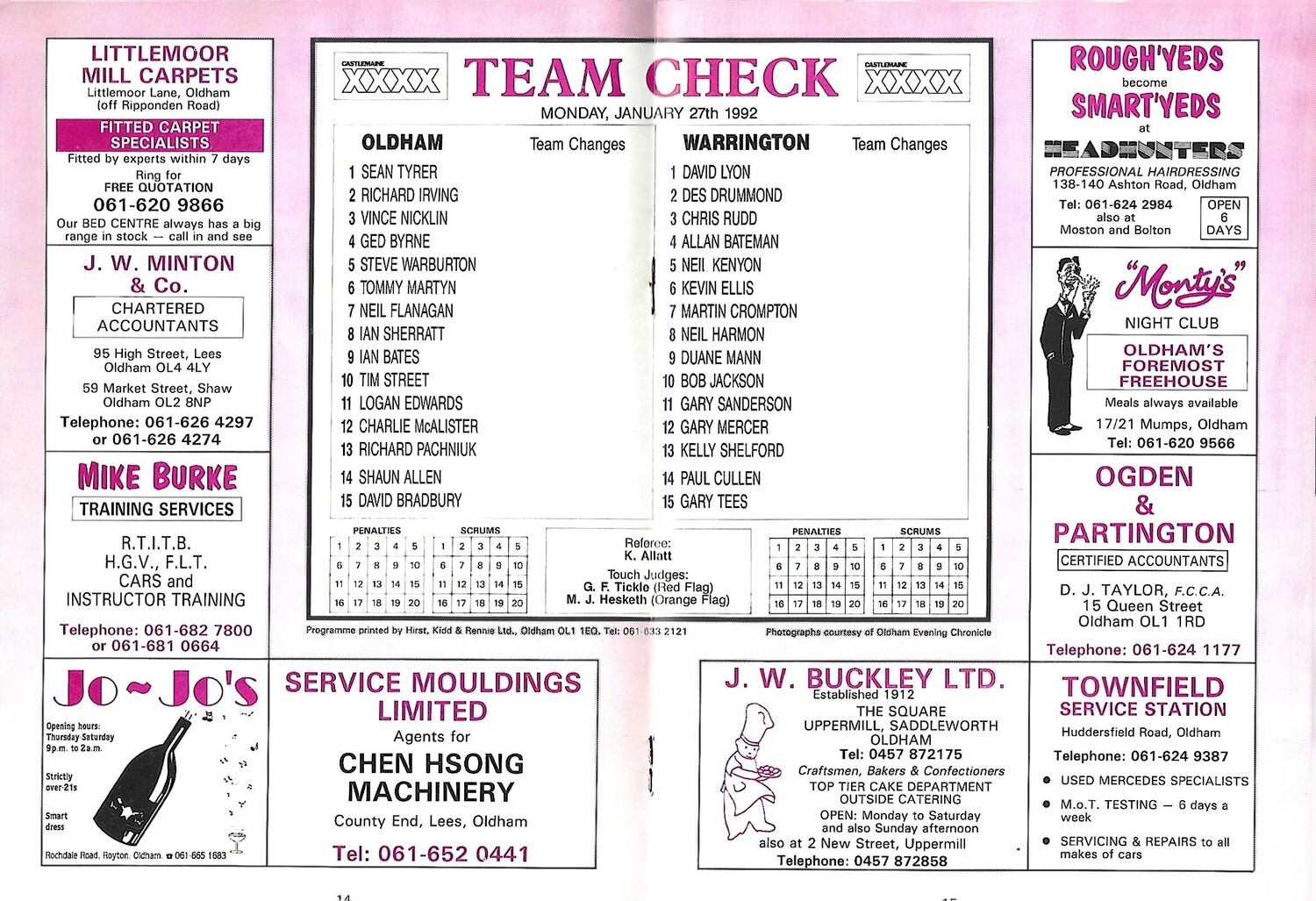 1991/92 Oldham v Warrington Silk Cut Challenge Cup 1st Round Rugby League Programme