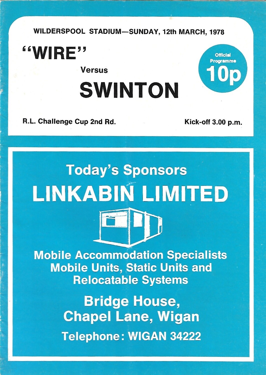 1977/78 Warrington v Swinton Rugby League Challenge Cup 2nd Round Programme
