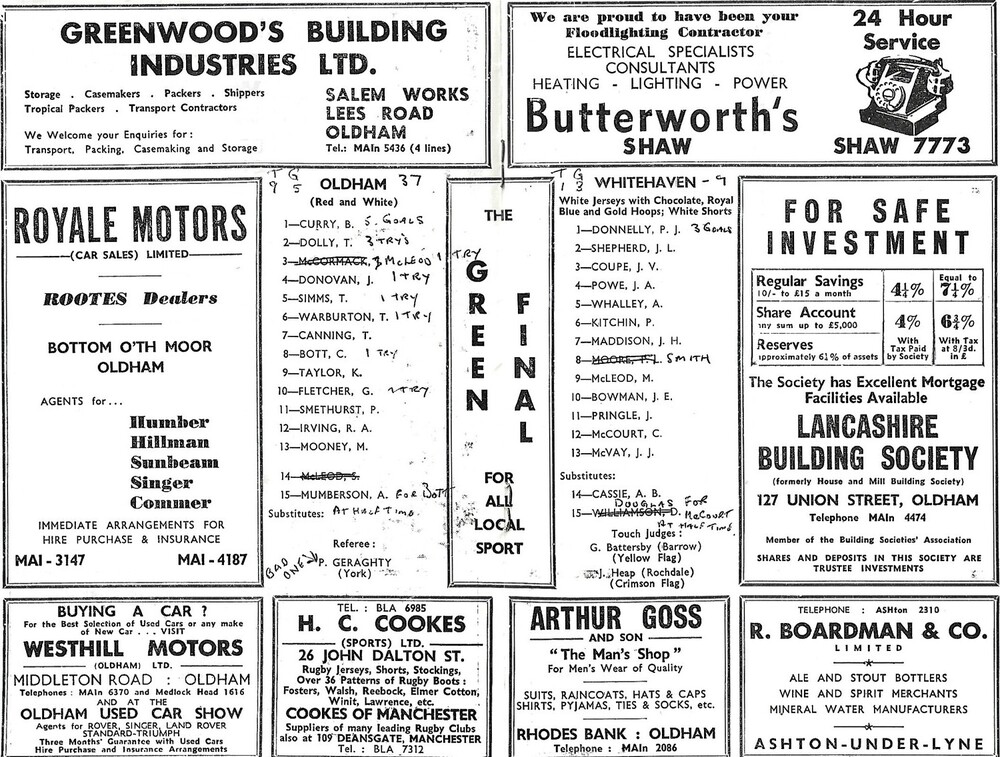 1966/67 Oldham v Whitehaven Rugby League Programme