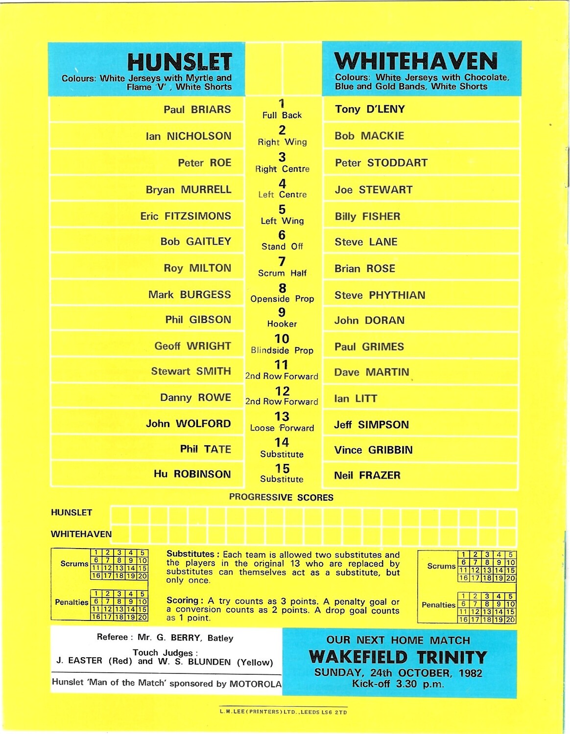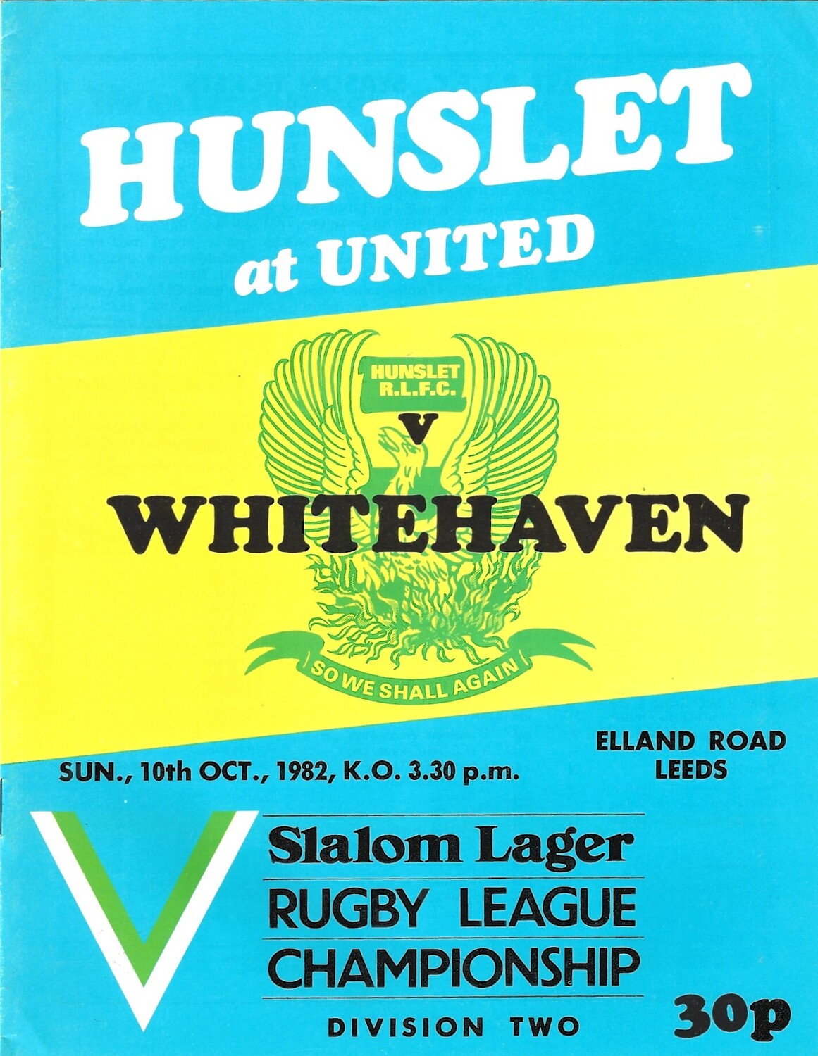 1982/83 Hunslet v Whitehaven Rugby League programme