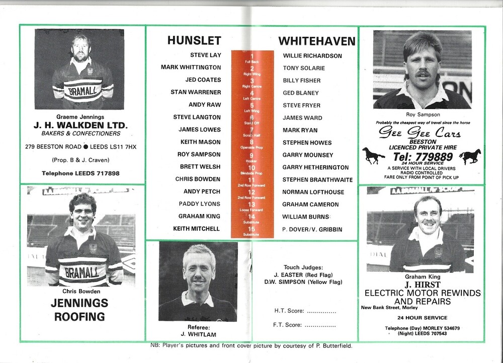 1989/90 Hunslet v Whitehaven Rugby League programme